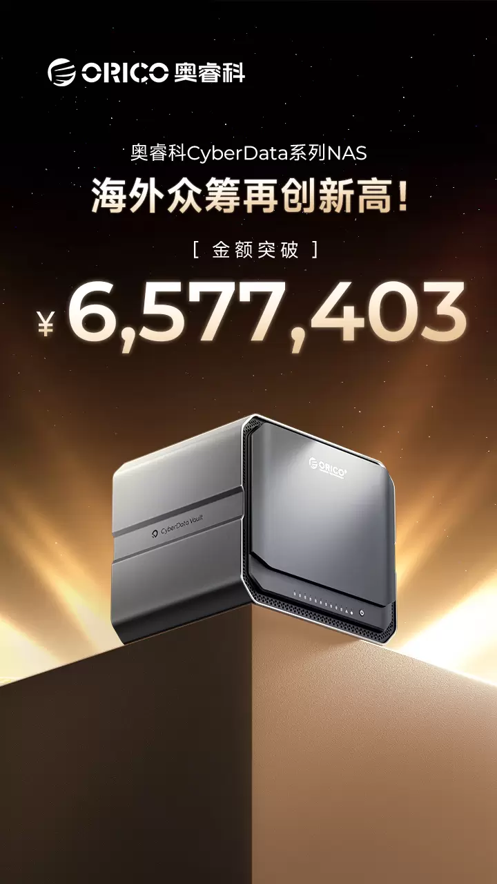 2025年7月,奥睿科全新CyberData系列AI NAS登陆国际众筹平台Kickstarter,历时30天的众筹活动吸引了全球数千名科技爱好者的热烈参与,最终以折合657万人民币的优异成绩圆满收官。