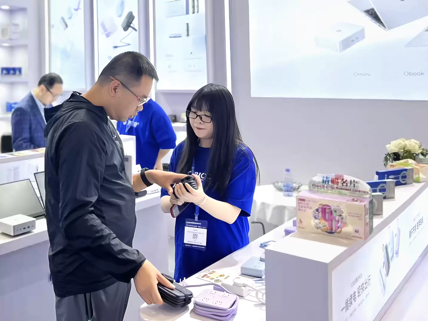 • 新品展示区:奥睿科提前预热了即将发布的两款重磅新品——极致轻薄的AI笔记本与性能强劲的迷你主机。
