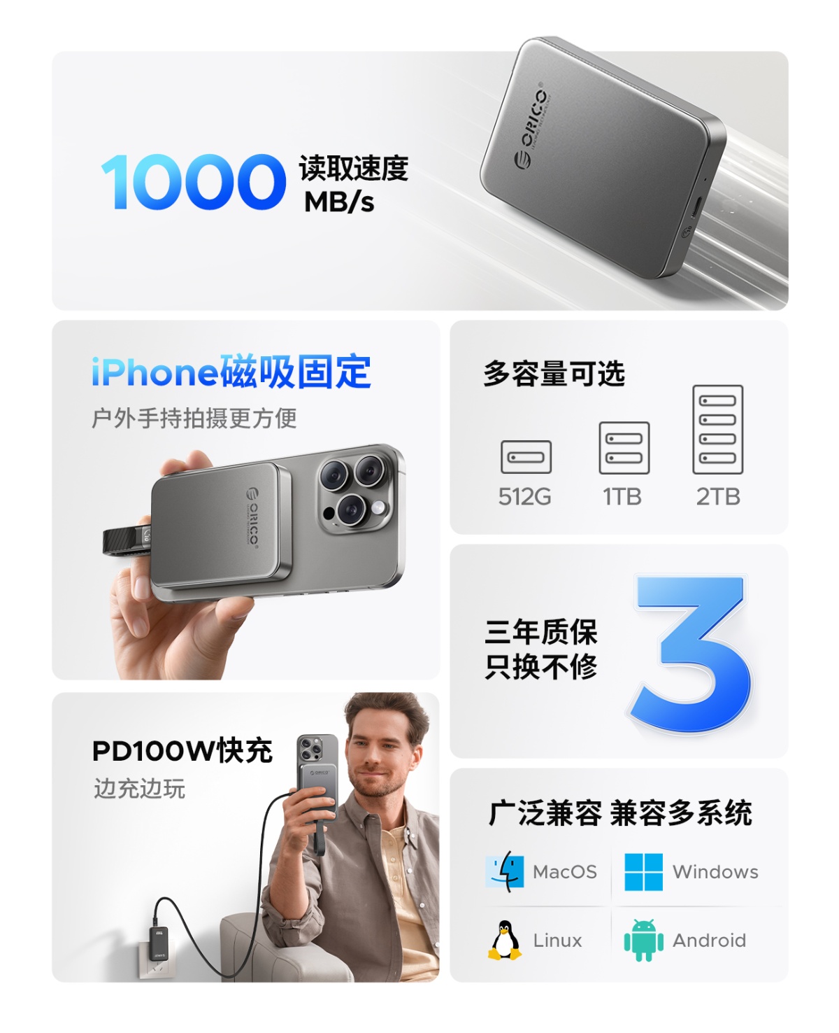 支架款磁吸移动固态硬盘