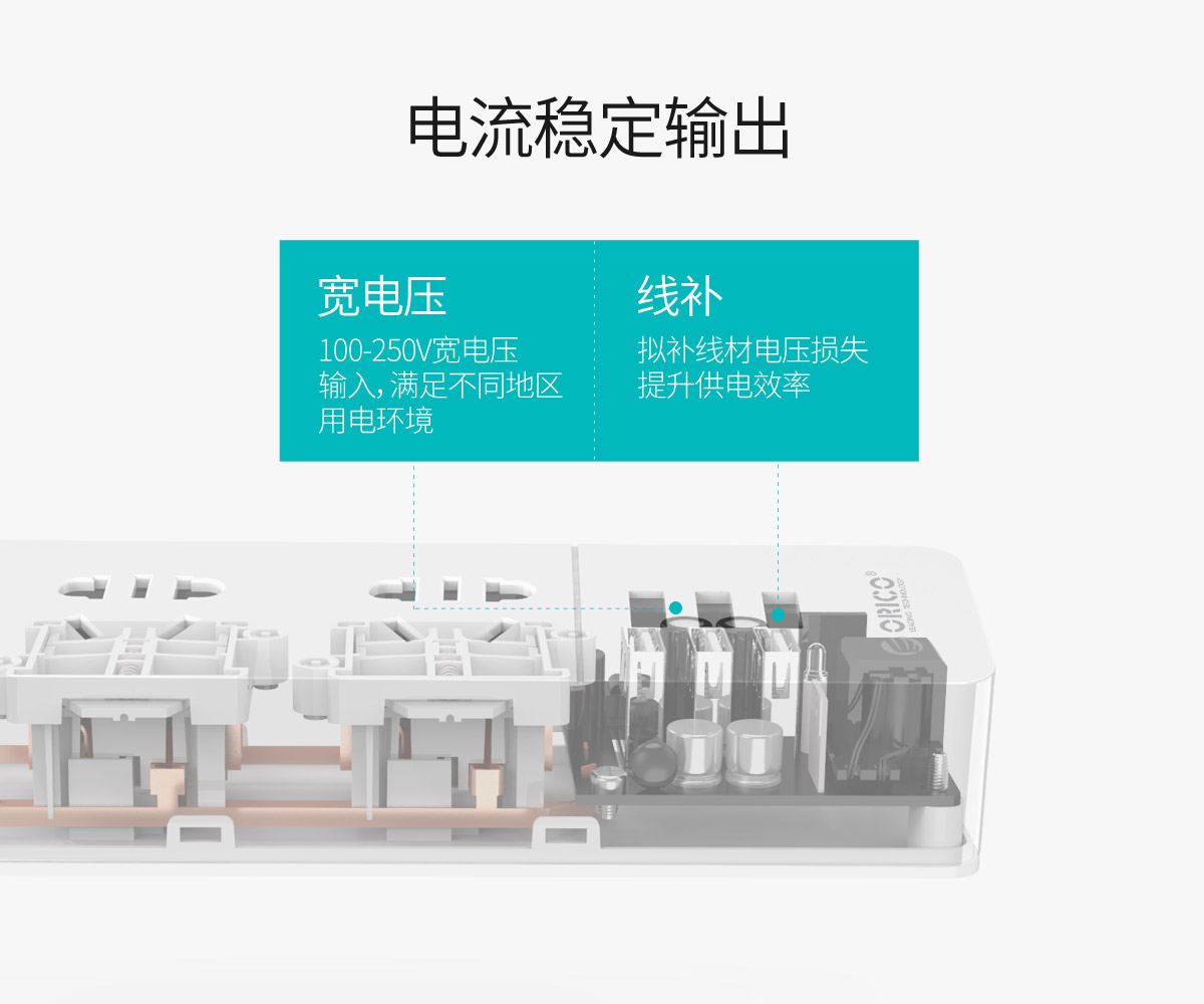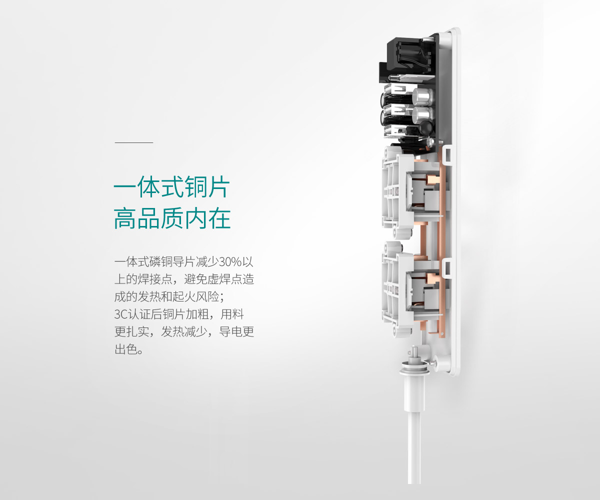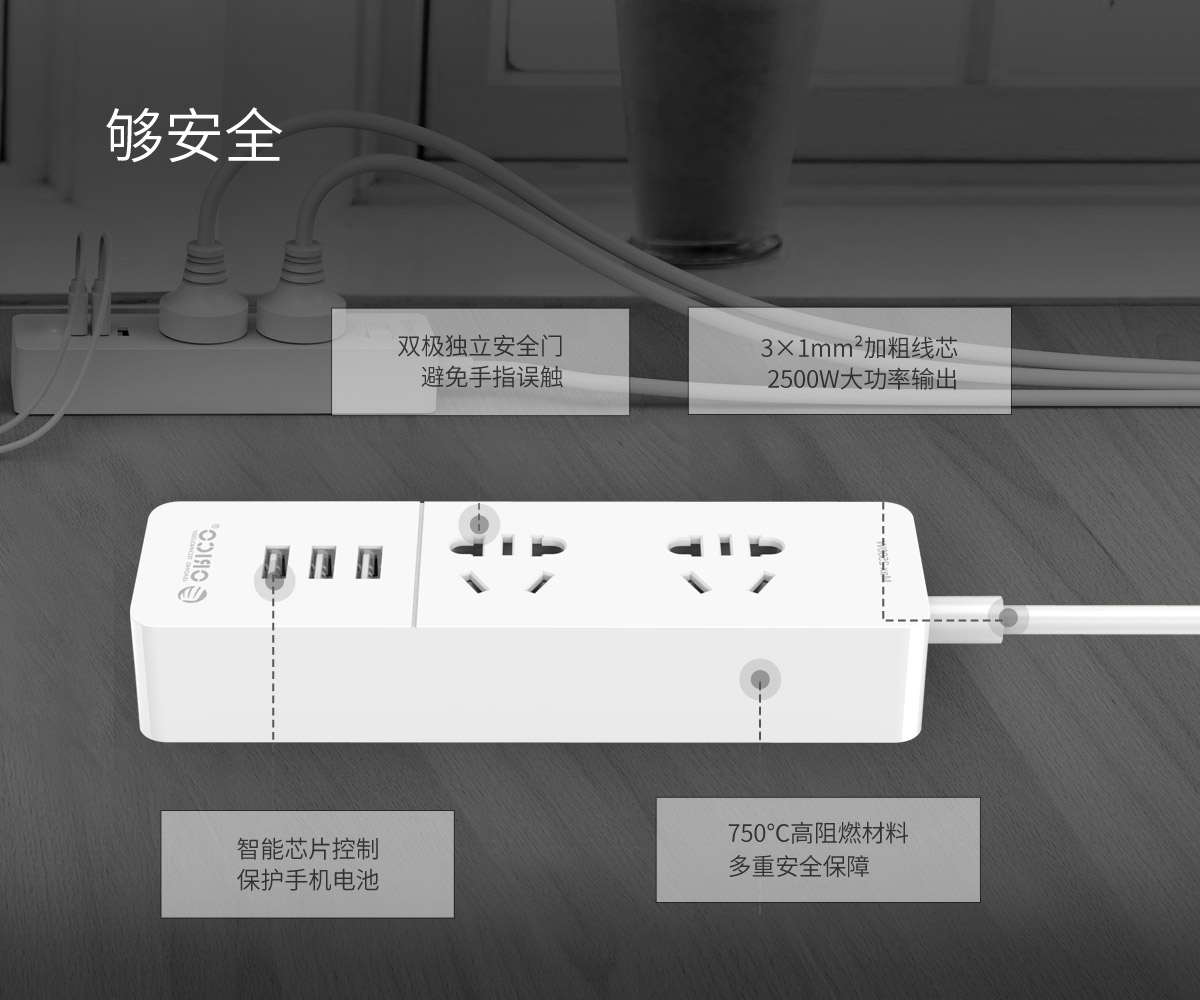 新国标便携桌面式排插,双极门独立开关,2500W大功率
