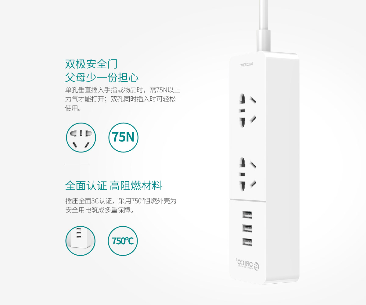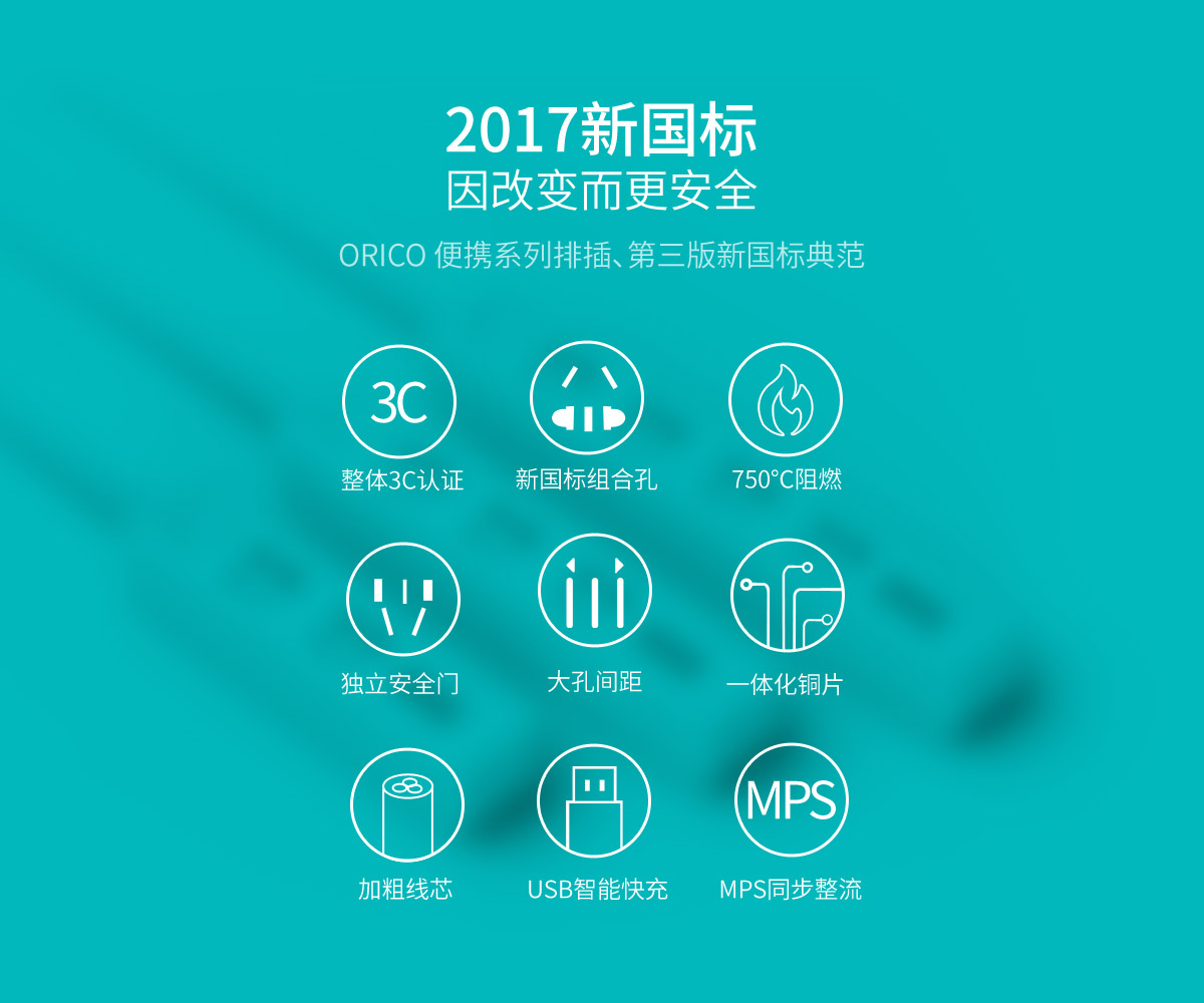 新国标2AC口3usb便携桌面式排插