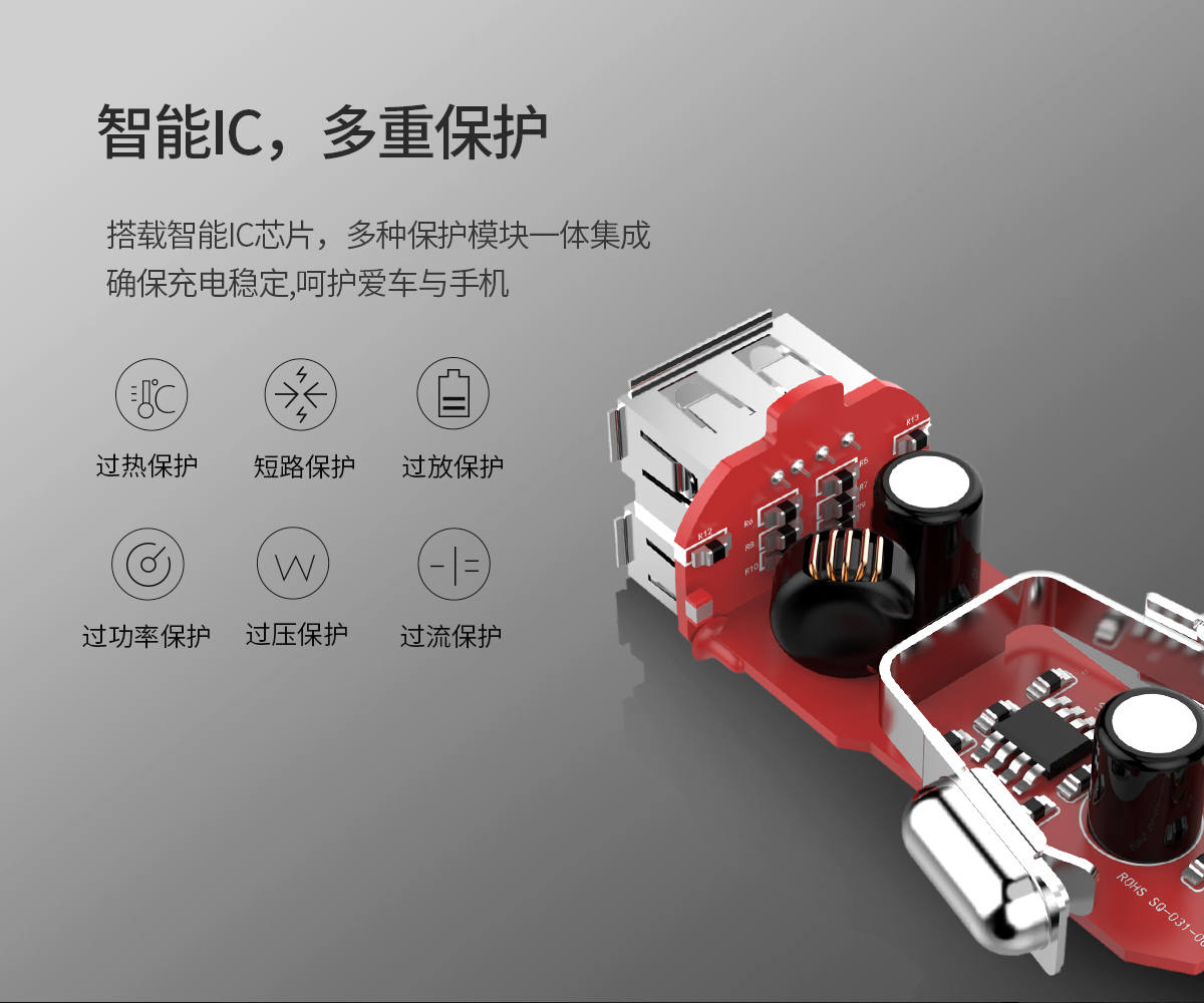 双USB充电,多重保护,兼容各种USB设备