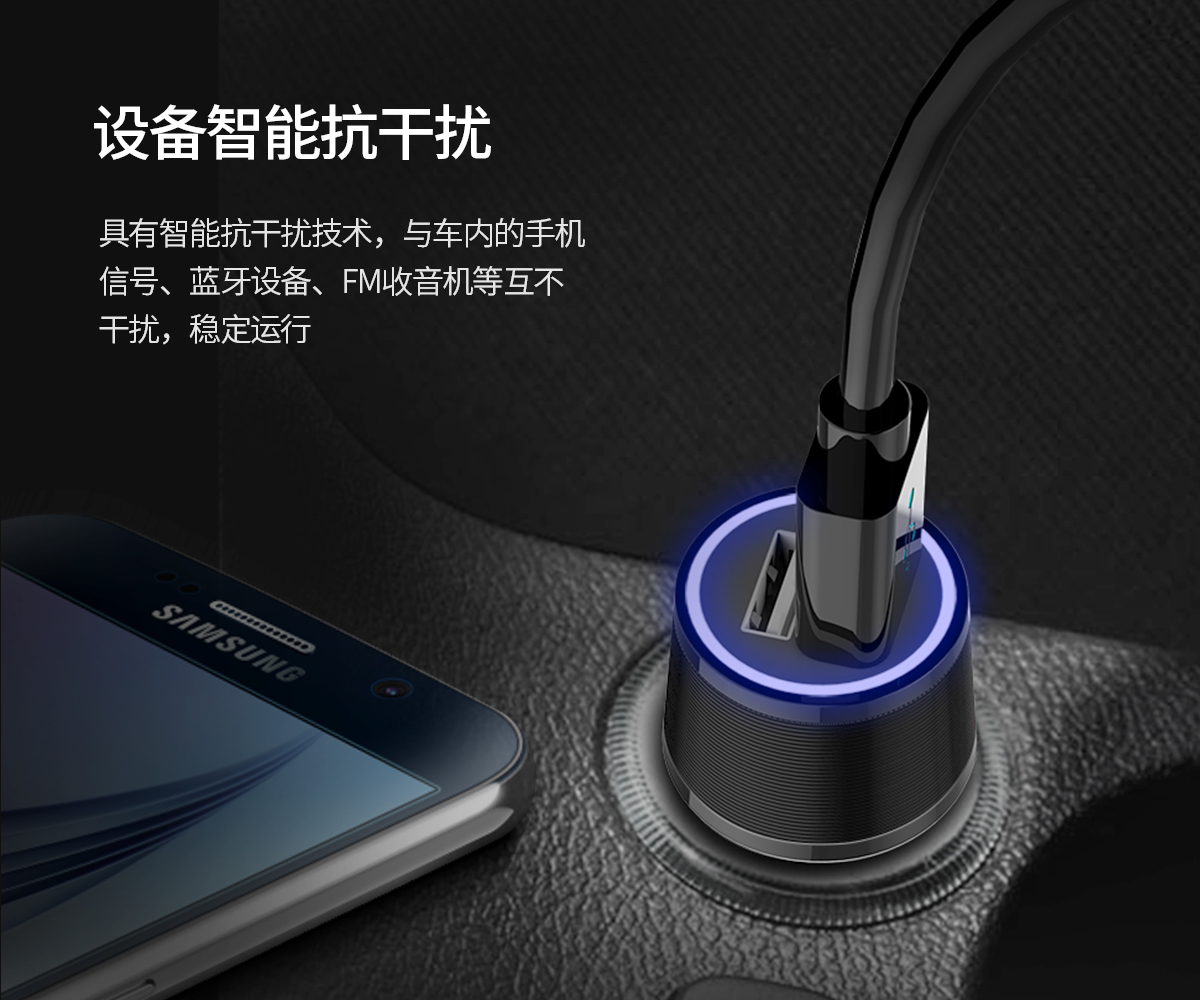 车载点烟口一拖二USB口抗干扰多重保护充电器