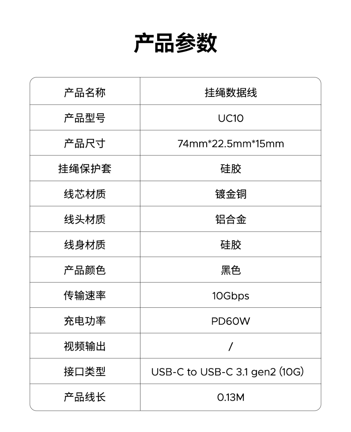 10 Gbps TypeC挂绳数据线