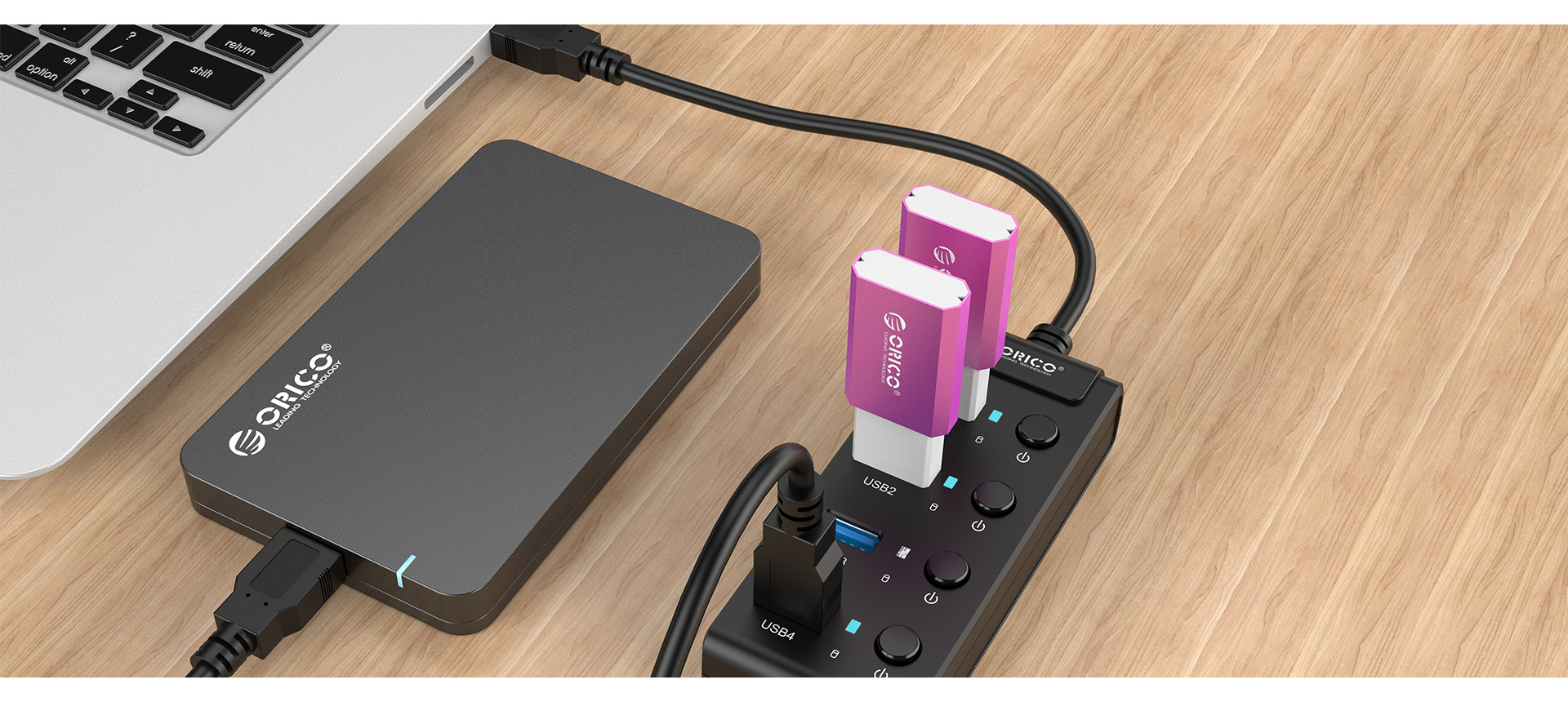 电脑原生接口稀缺,W9PH4实现4口USB3.0扩展设计,4个USB设备可同时运行,满足您更多设备需求的同时更保护了您电脑珍贵的原生接口。