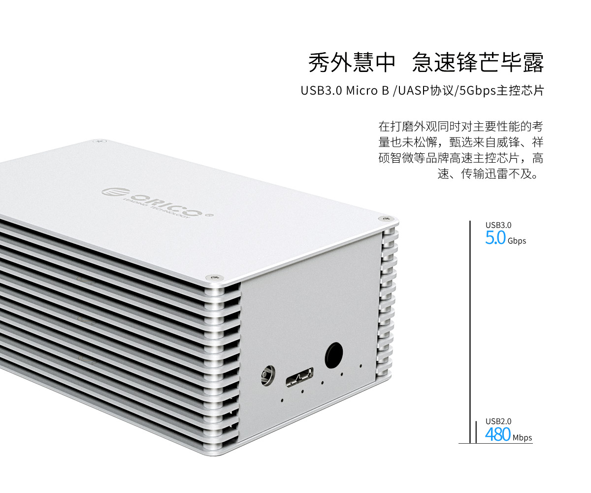 3.5英寸镂空硬盘盒,micro B接口,单盘支持2TB容量,DIY硬盘盒
