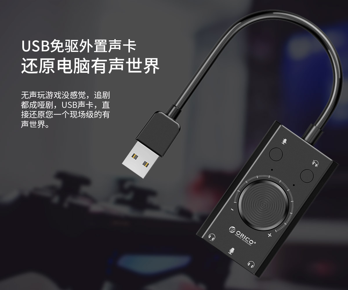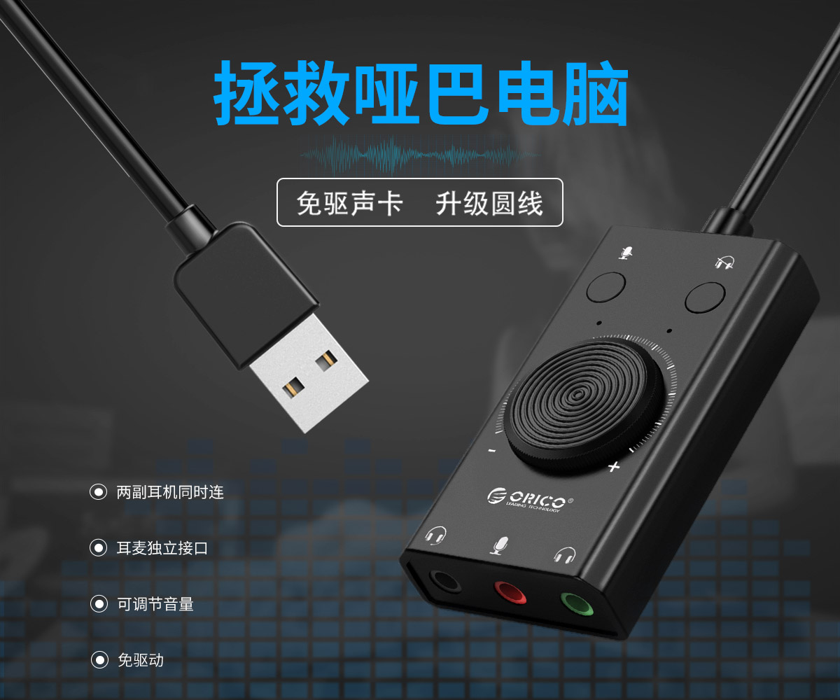 多功能免驱声卡,三孔输出,兼容主流设备,即插即用