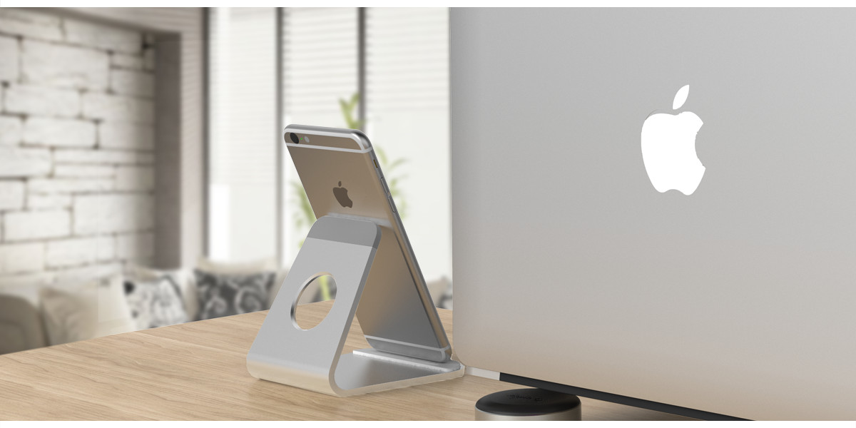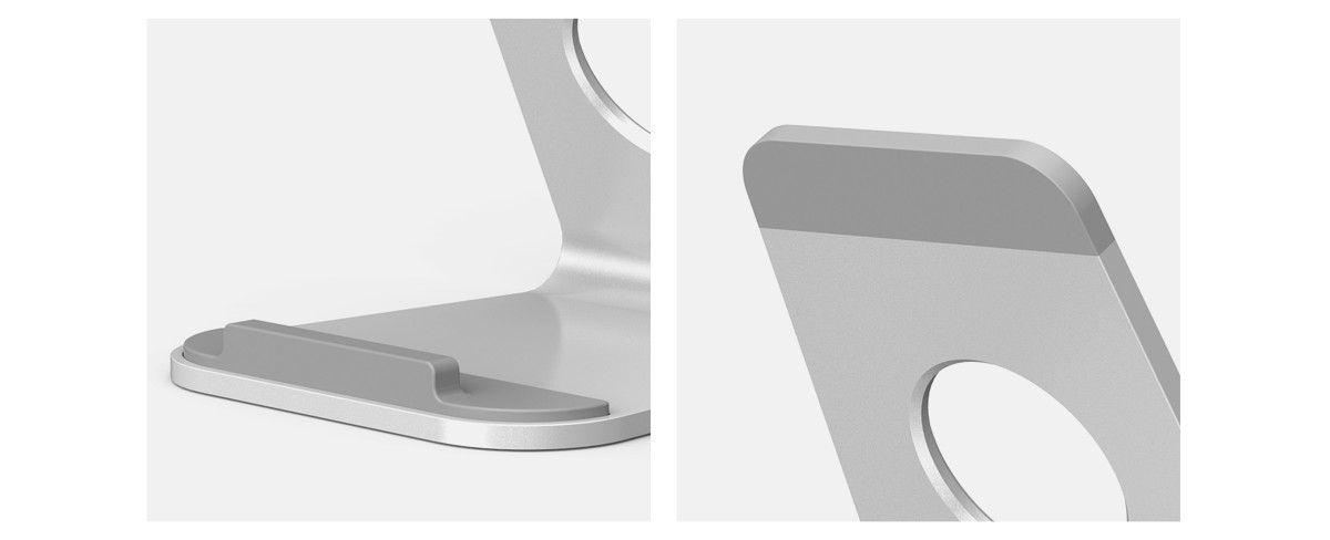 在上下接触点带有硅胶防滑垫,配合三角形稳定设计,手机/平板放置不会滑动。