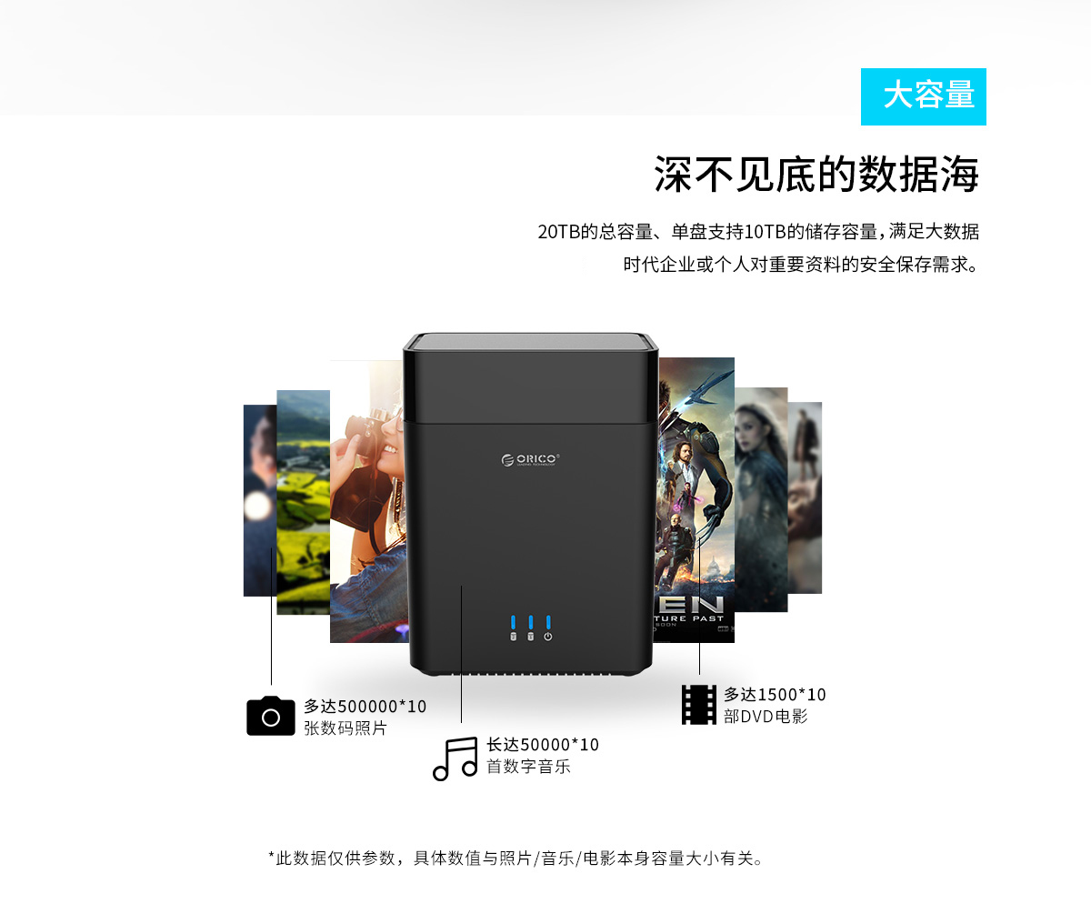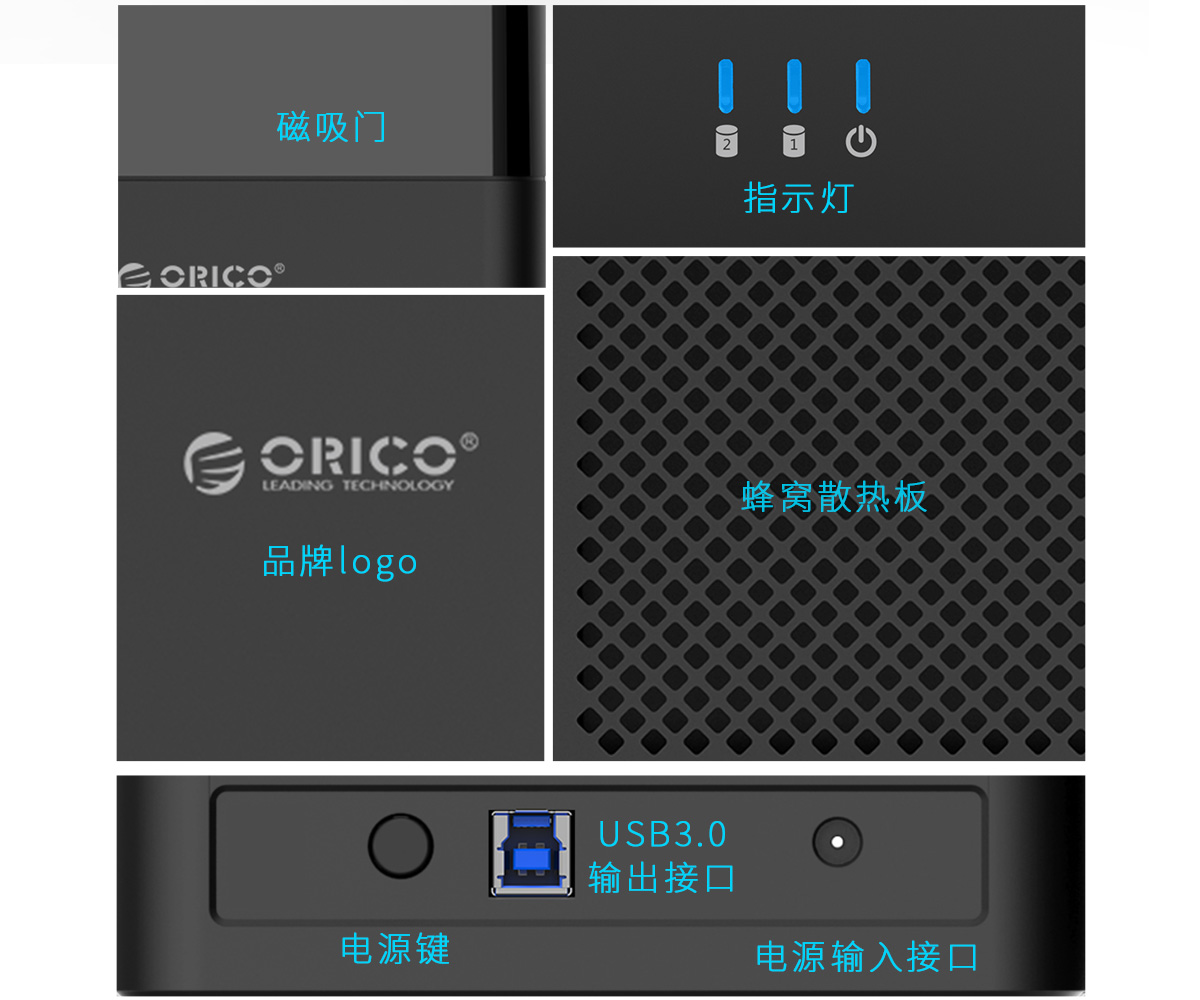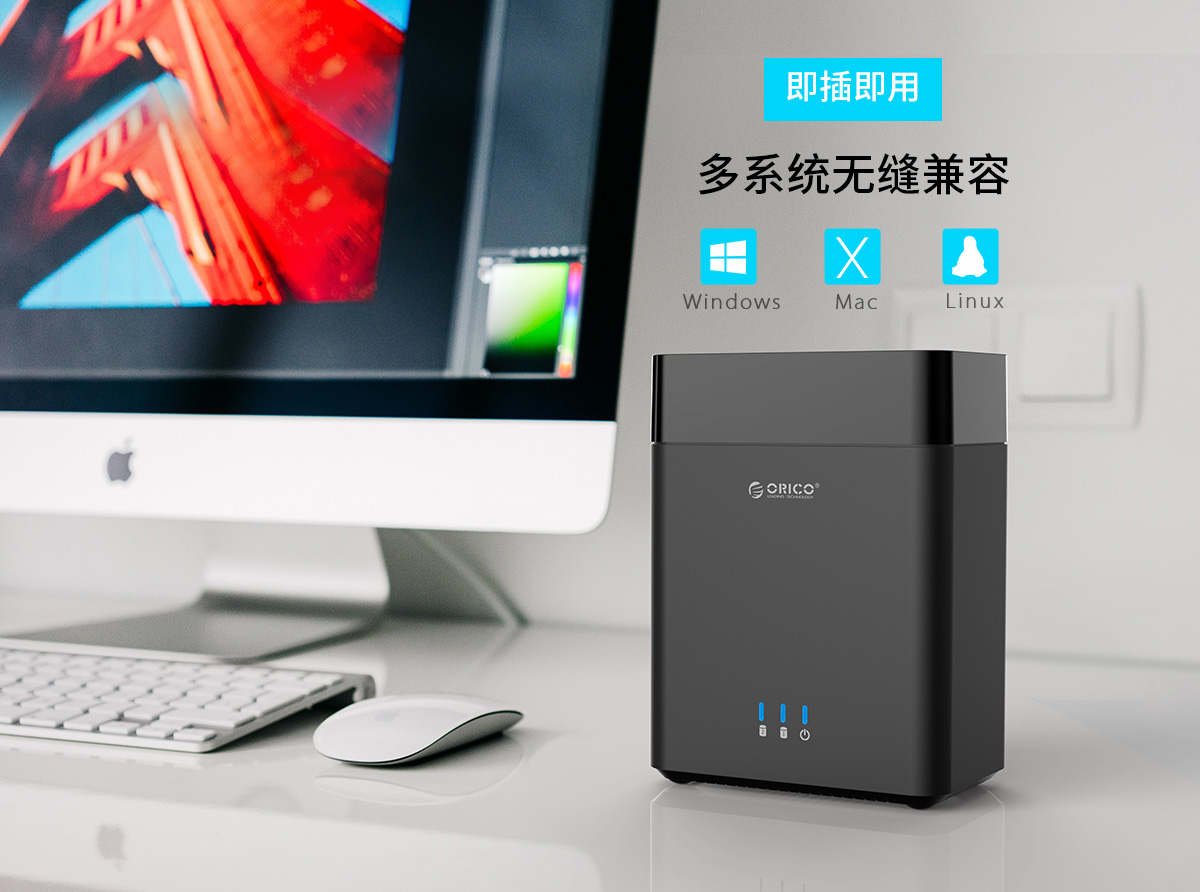 八芯磁吸,3秒拆装,单盘支持10TB,即插即用,智能休眠,节能环保,静音风扇及蜂窝孔散热,支持UASP协议。