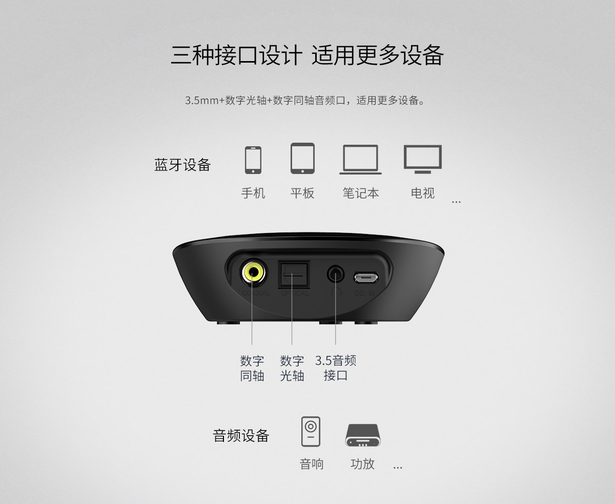 无线音频接收器,三种接口,广泛兼容,蓝牙4.1规范,NFC