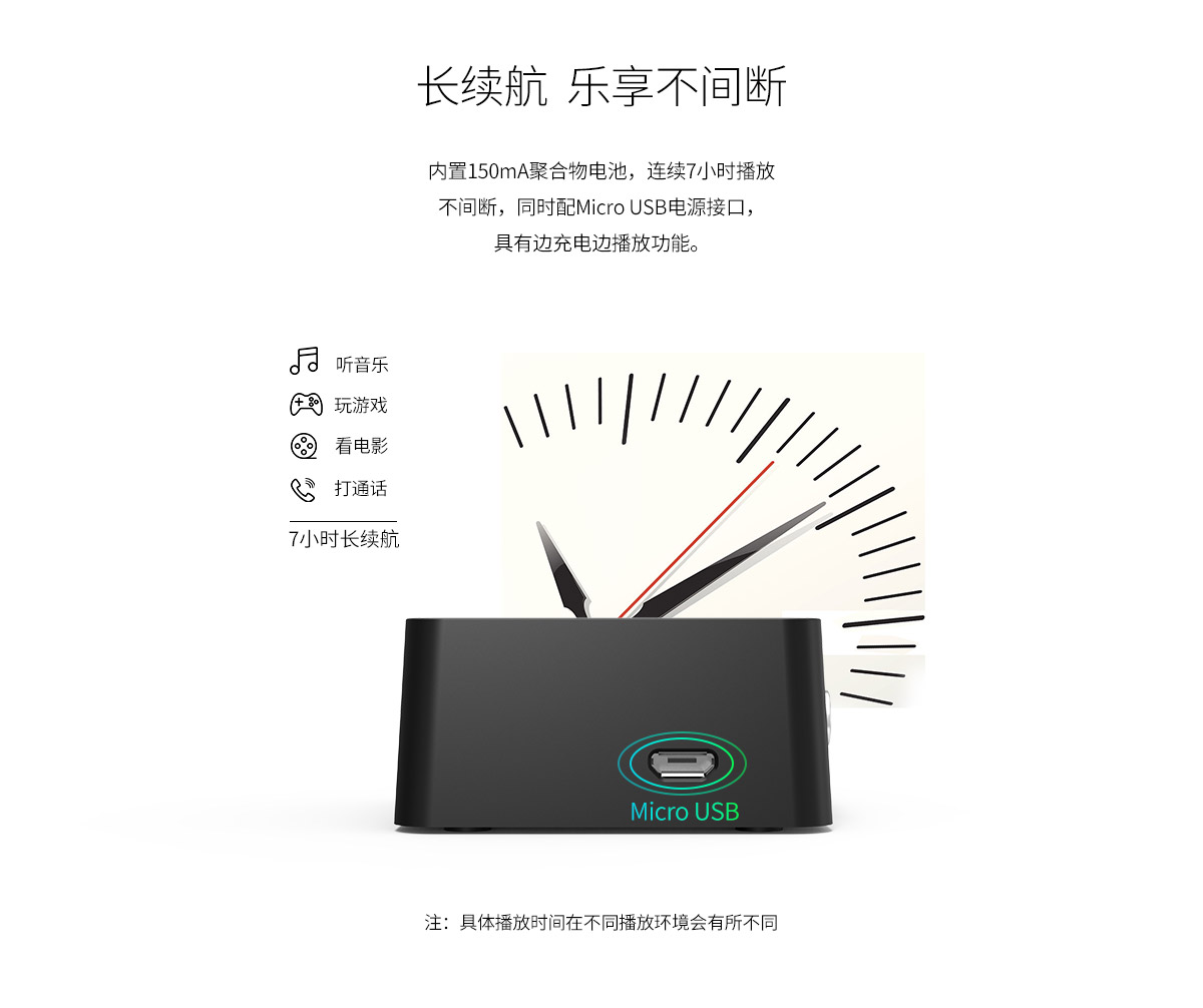 7h续航,10m传输,高保真音效,无线蓝牙接收器