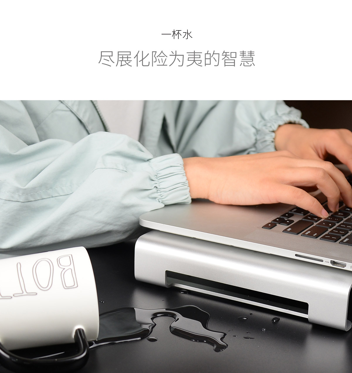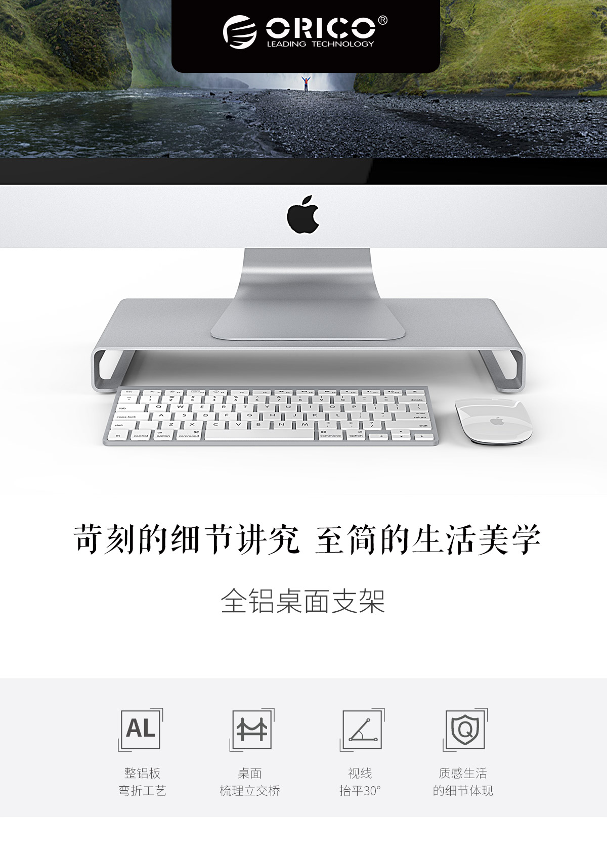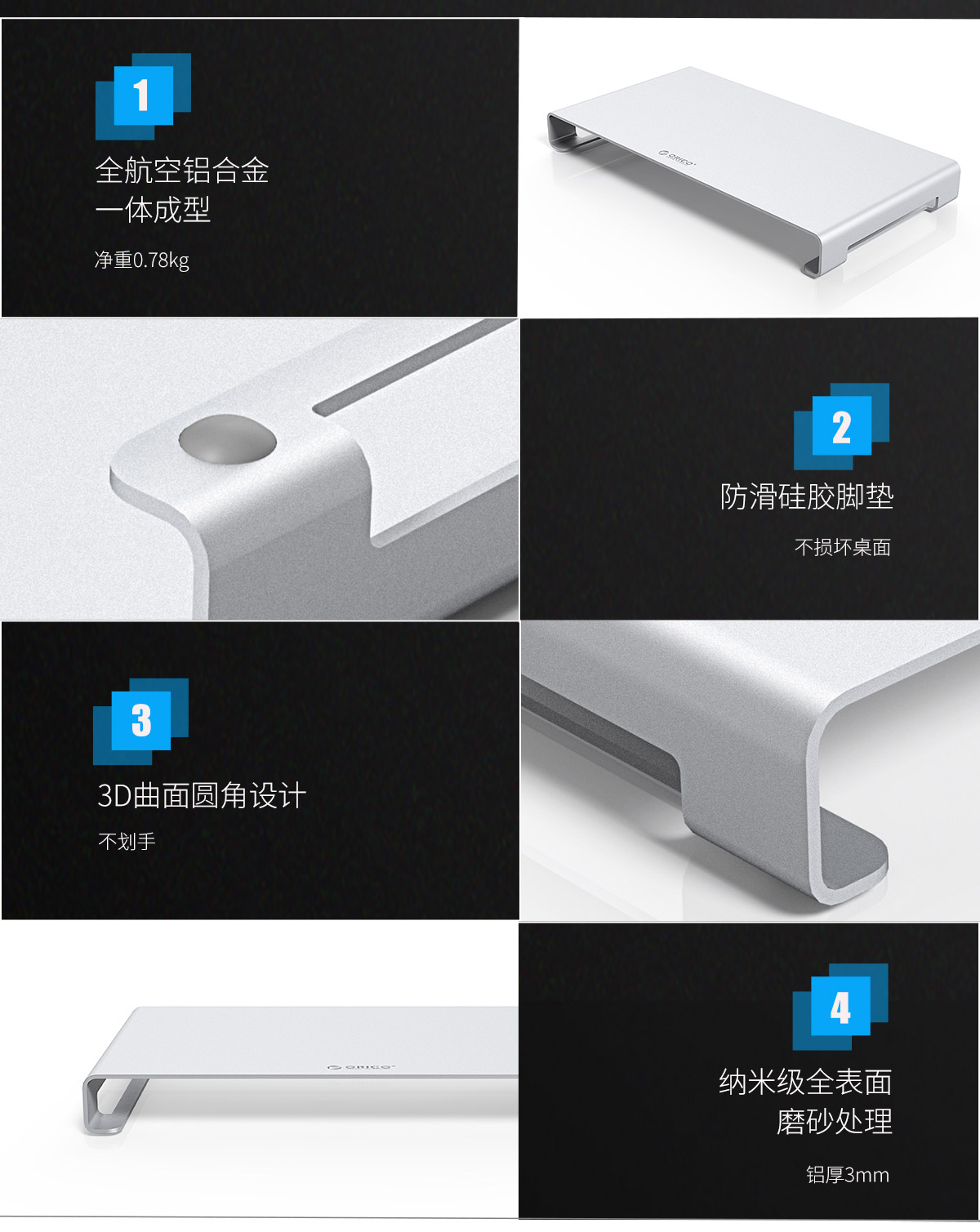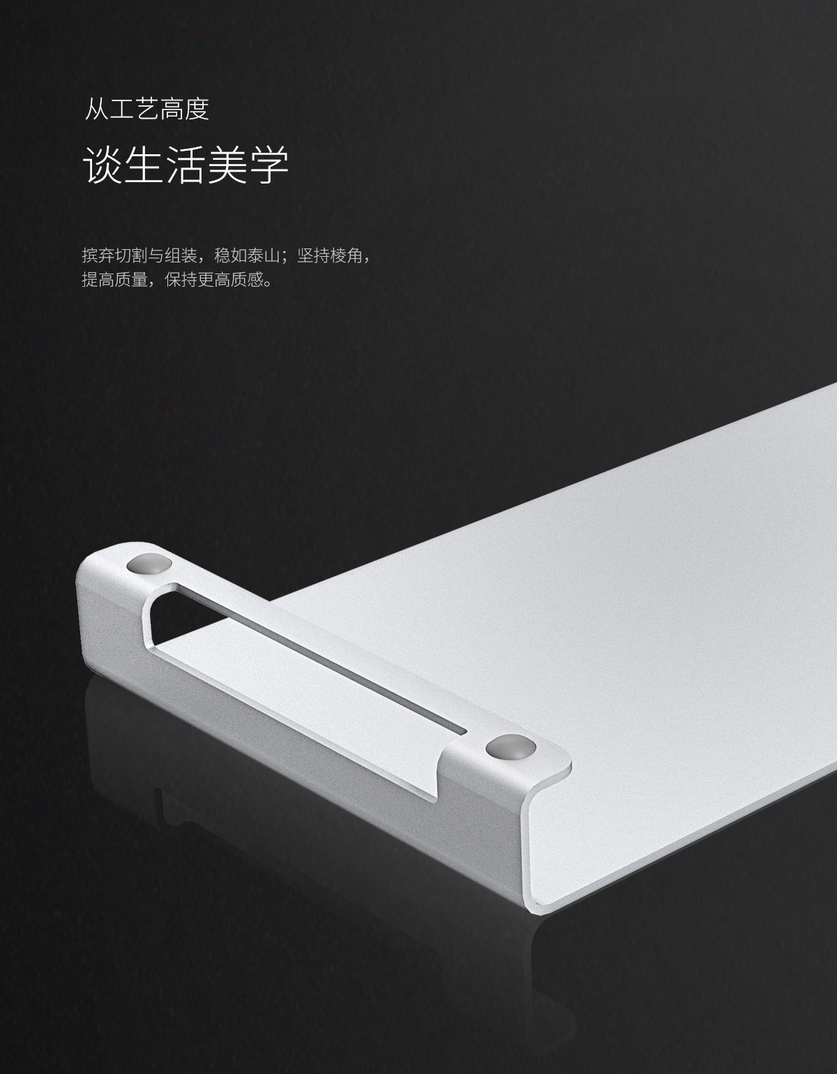 铝合金一体成型,防滑硅胶脚垫,3D曲面圆角,表面磨砂处理