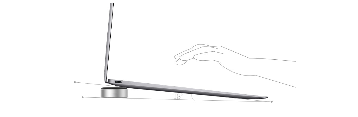 倾斜设计,不仅让您拥有健康的浏览视角,同时通过增加笔记本底部的空气流通空间,有效改善气流,有助于散热系统的运作,配合铝合金设计更可以进一步提高您Macbook/ipad的散热效率。
