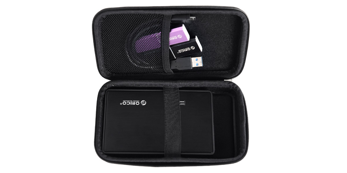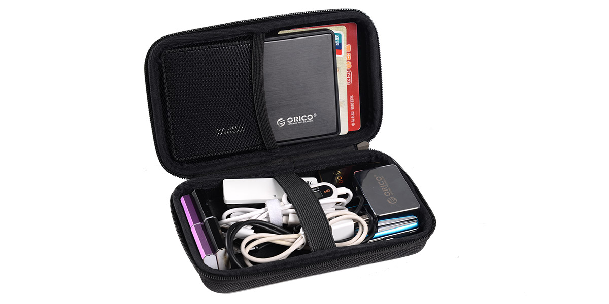 PHE-25将内部容积升级到166*95*30mm,让日常收纳变得更加自由, 可收纳不同品牌2.5英寸移动硬盘及数据线外,您更能将日常小物件如U盘、信用卡、读卡器、SD卡、名片、MP3、卡片相机、线材、零钱等收纳其中,自由便携。