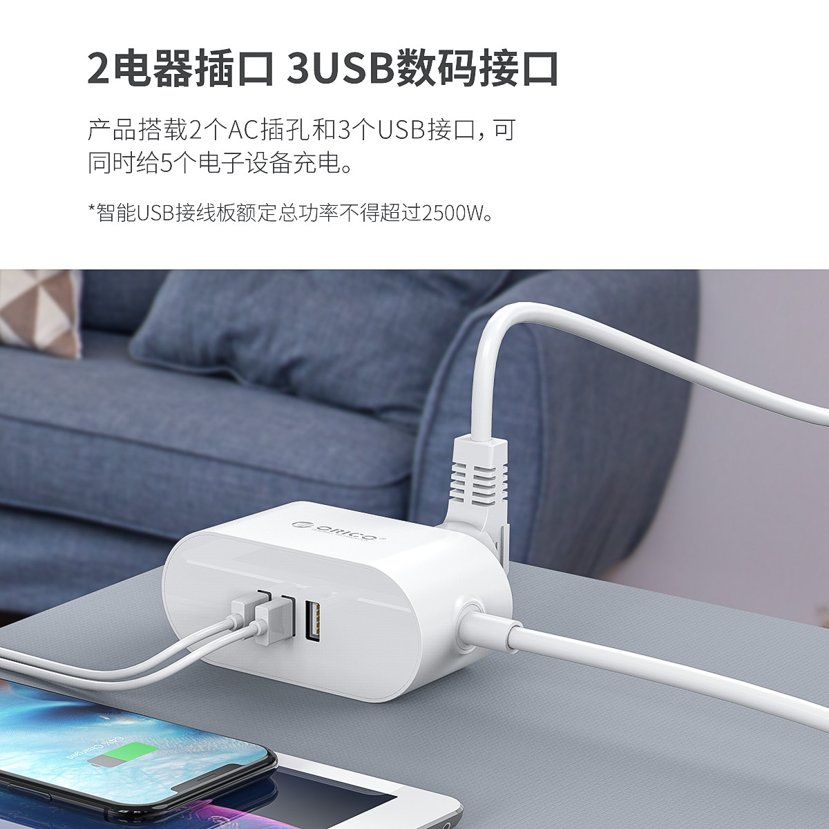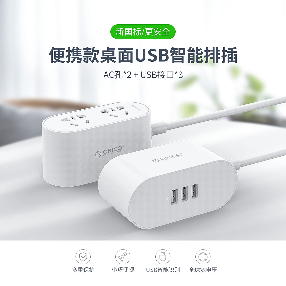双面款2AC 3USB智能便携排插