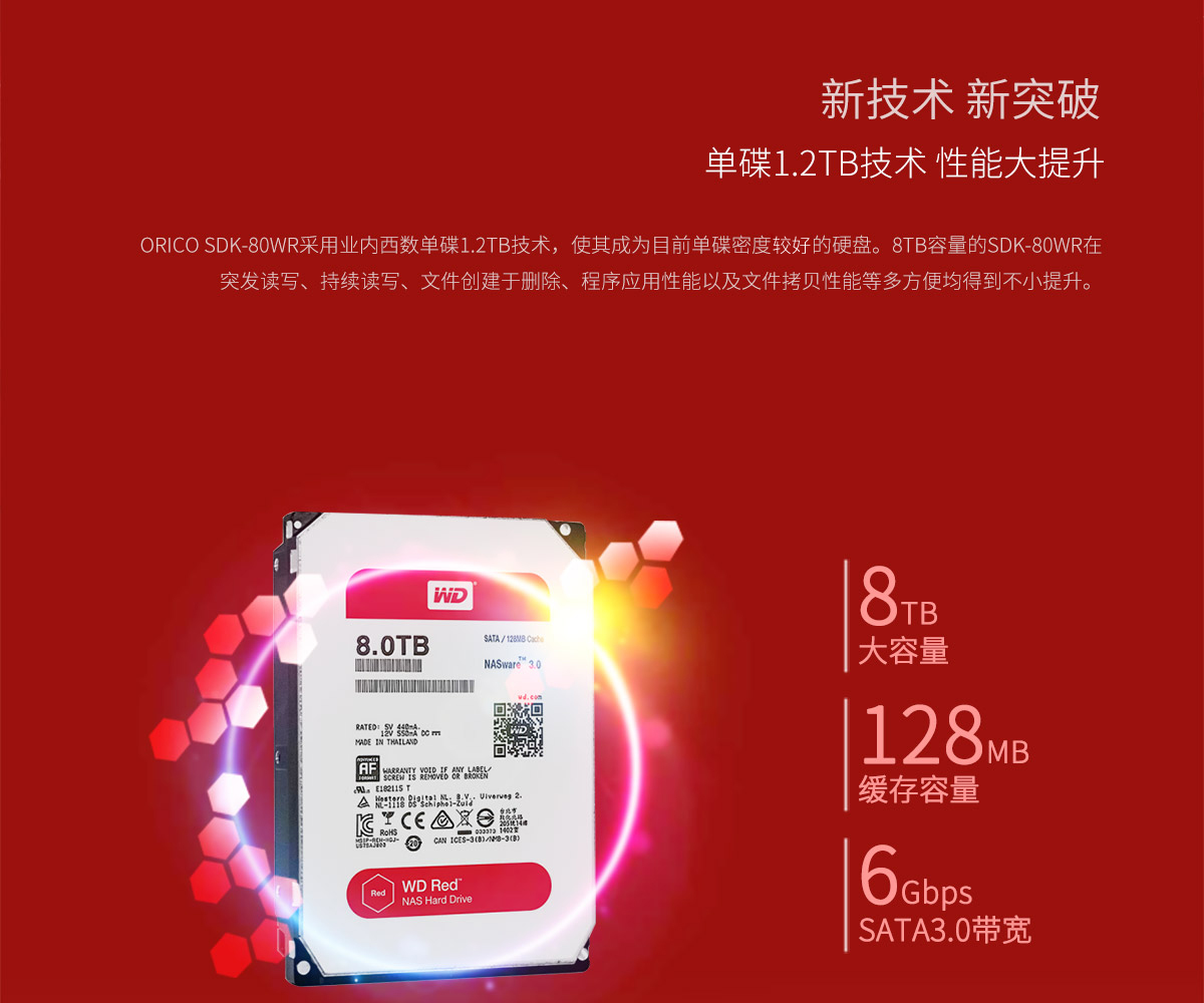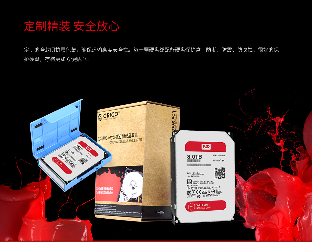 企业级定制红盘,SATA3.0接口,6Gbps快速传输,封闭减震装
