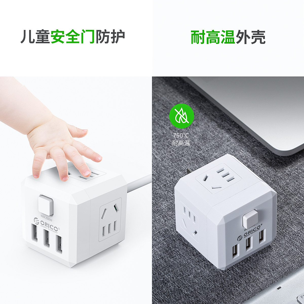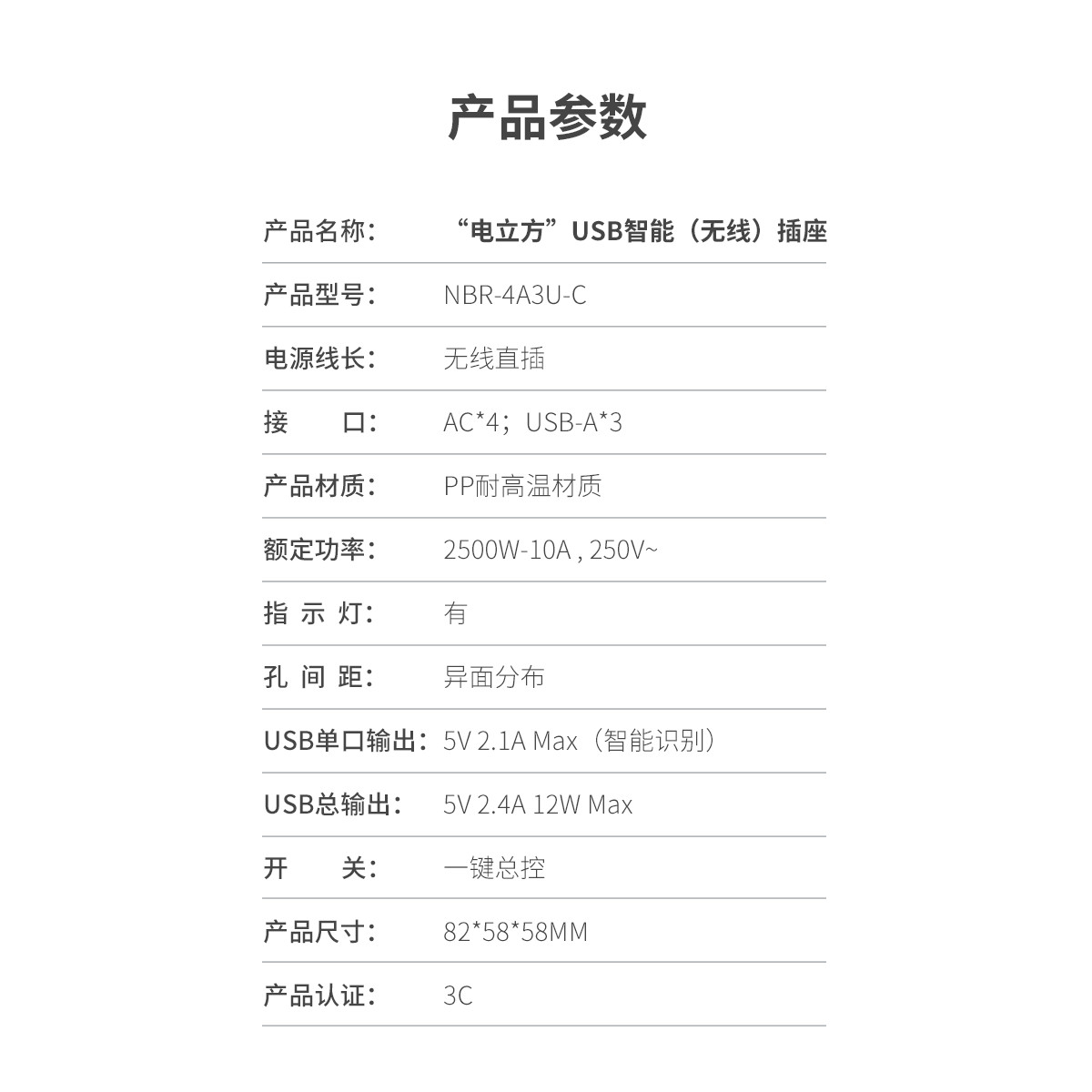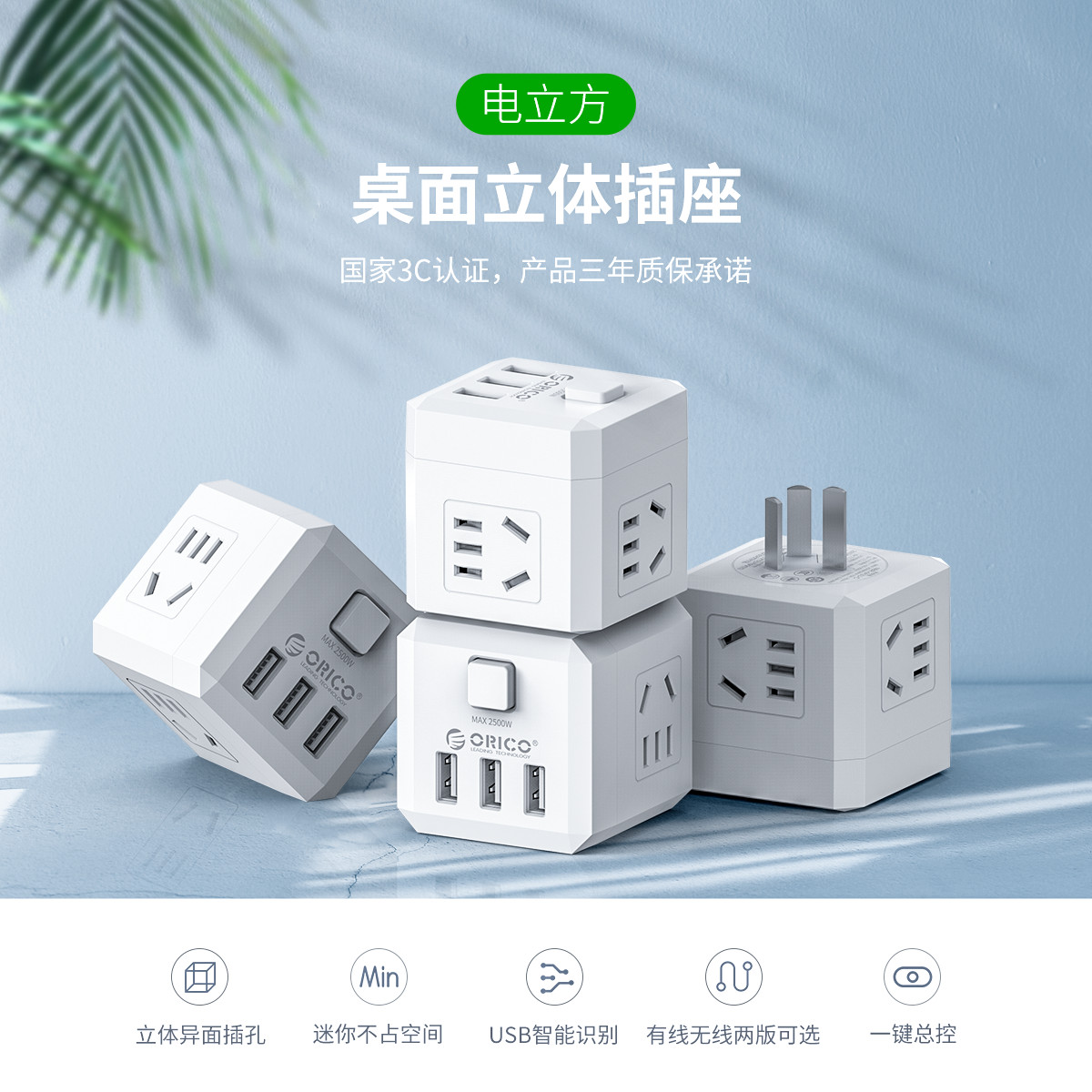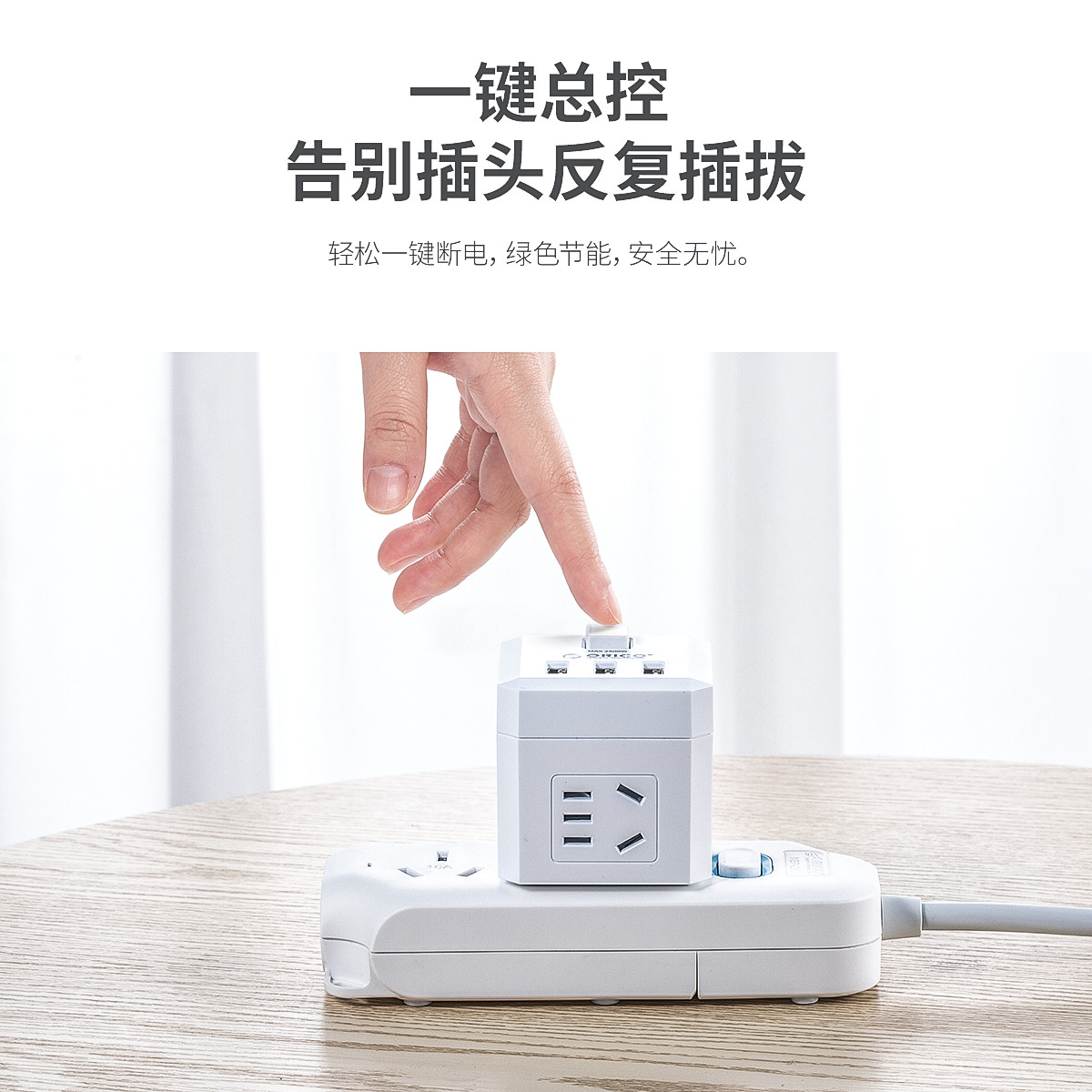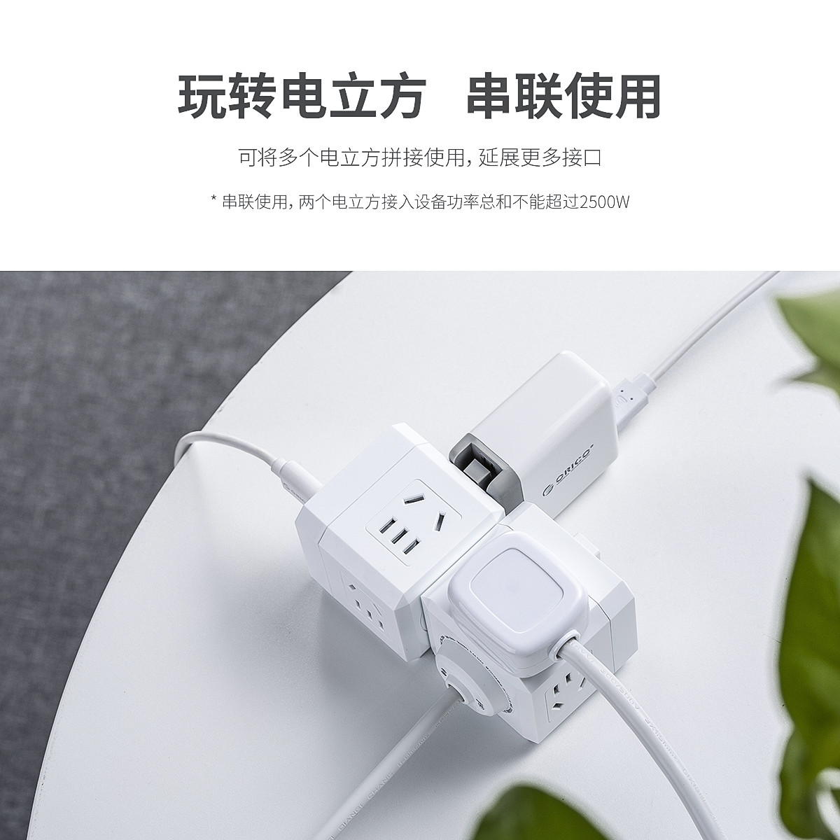 电立方2500W大功率4 AC口+3 USB排插(带总控开关)