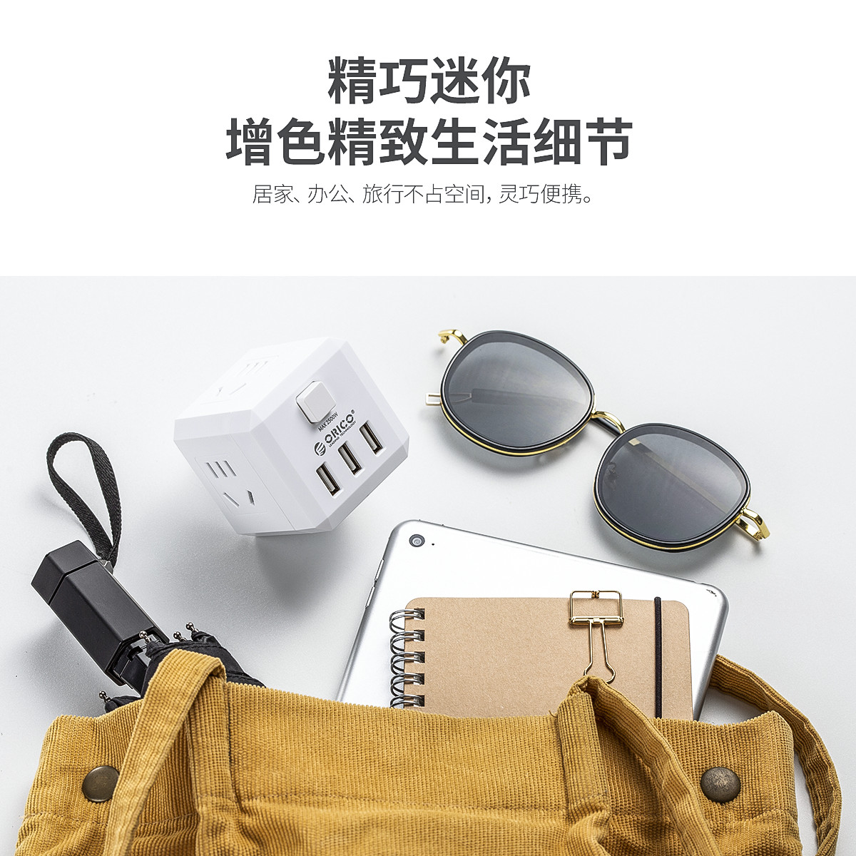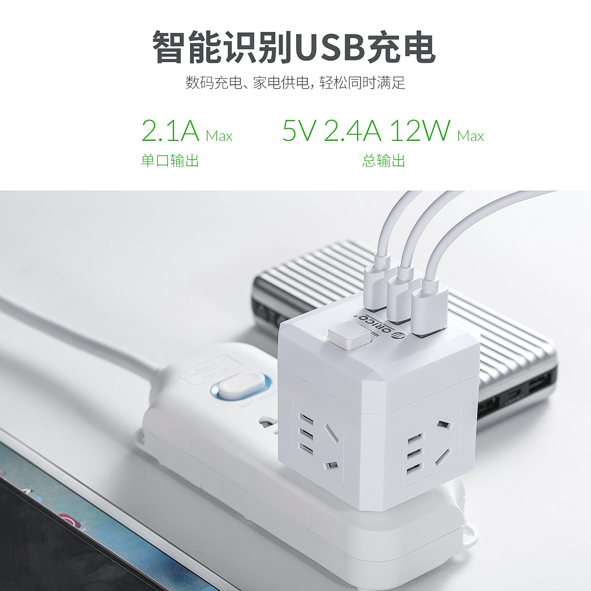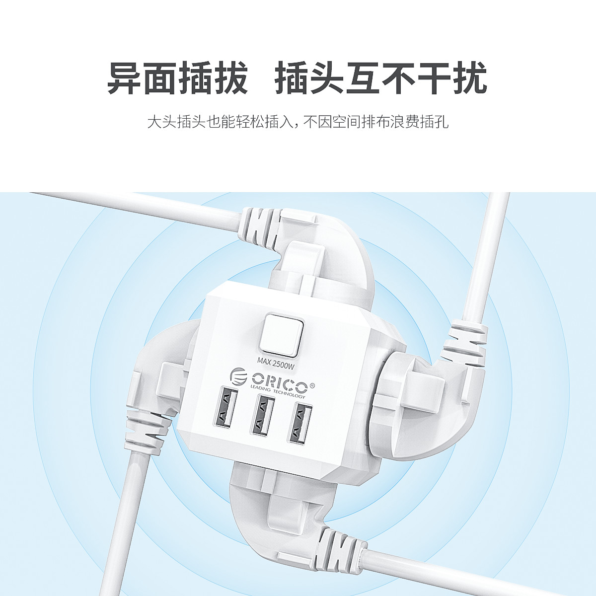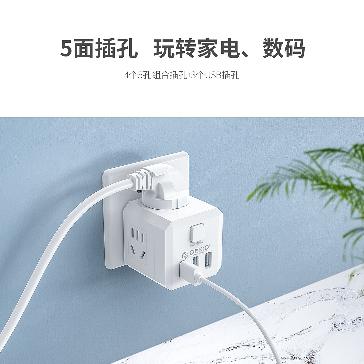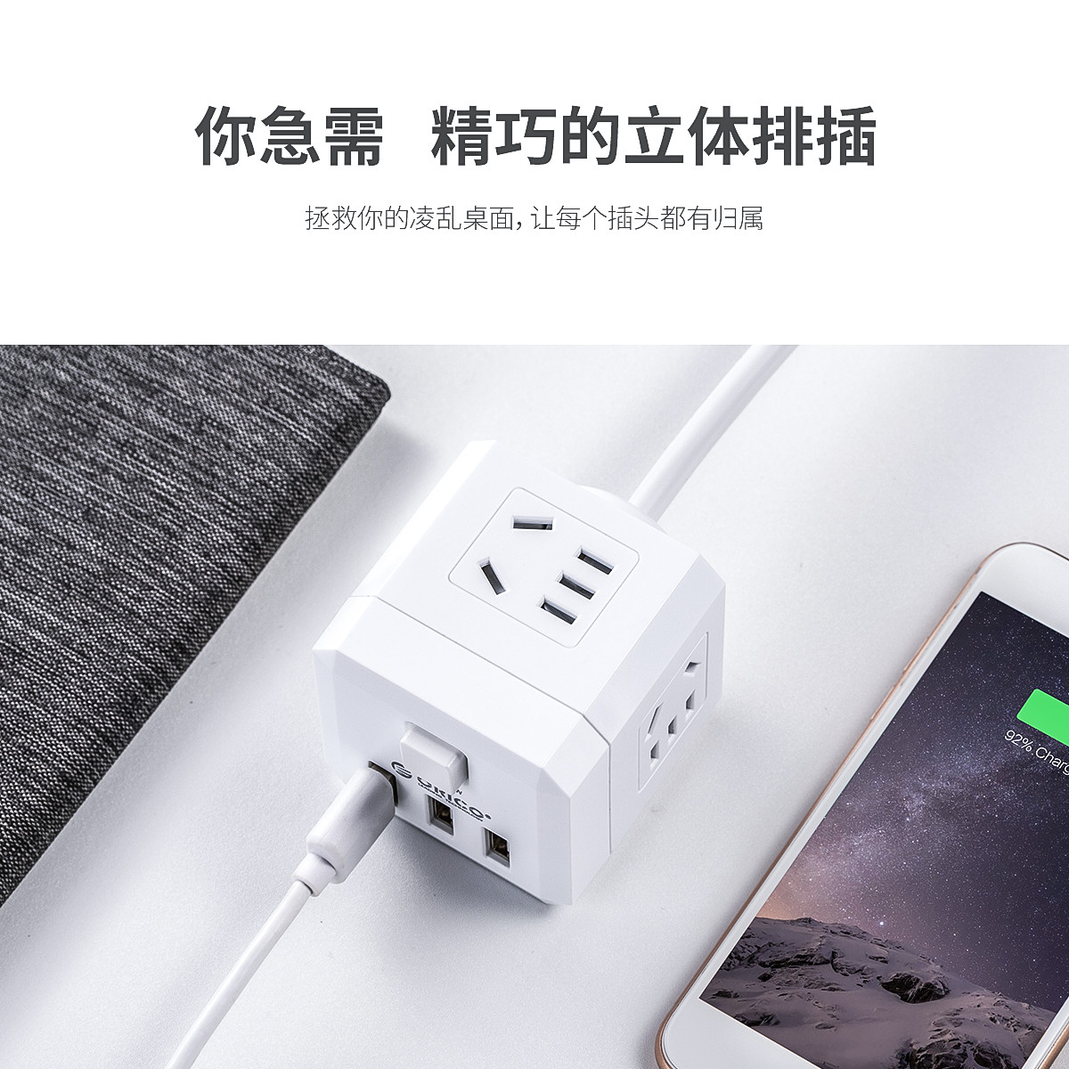电立方2500W大功率4 AC口+3 USB排插(带总控开关)
