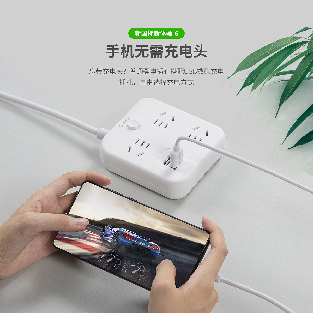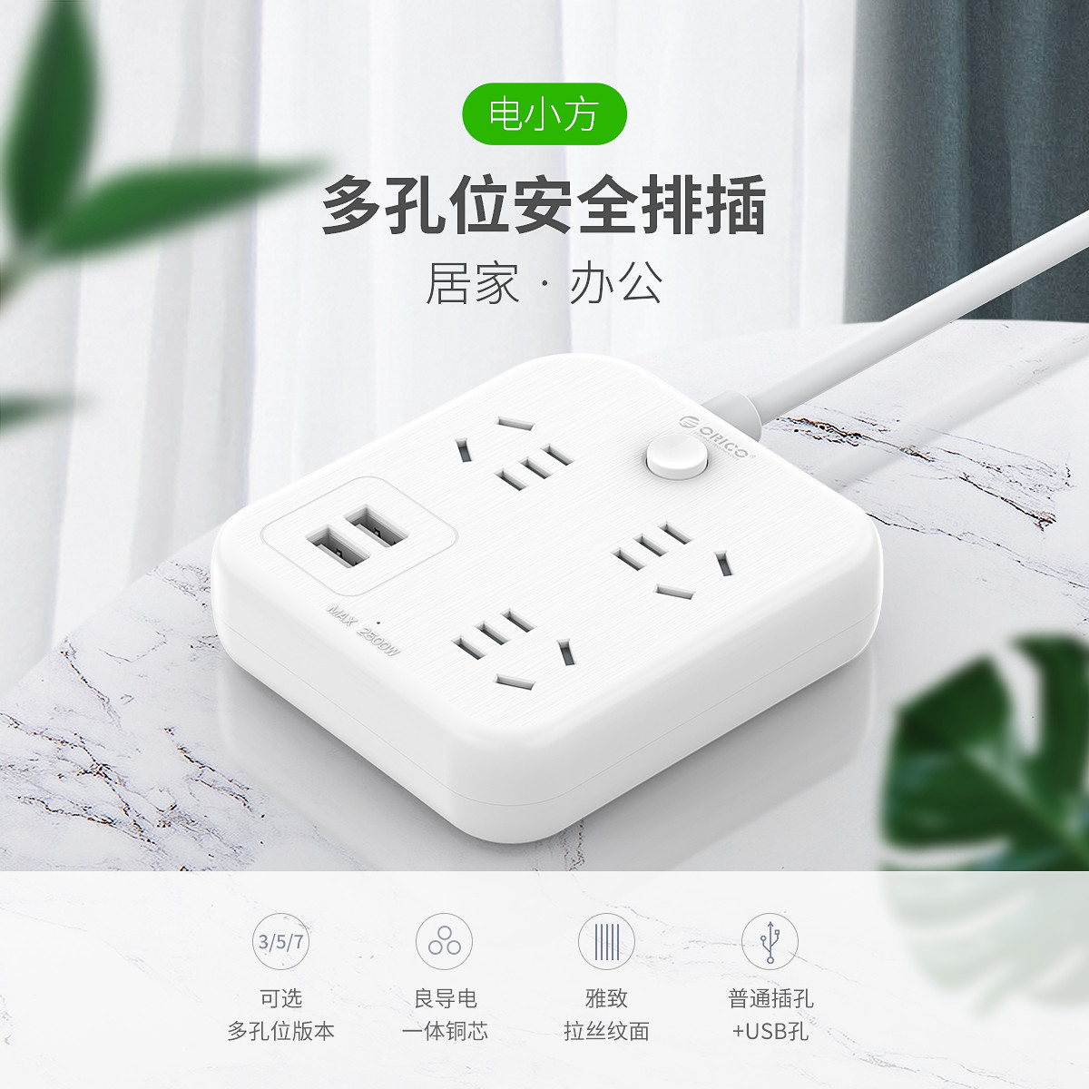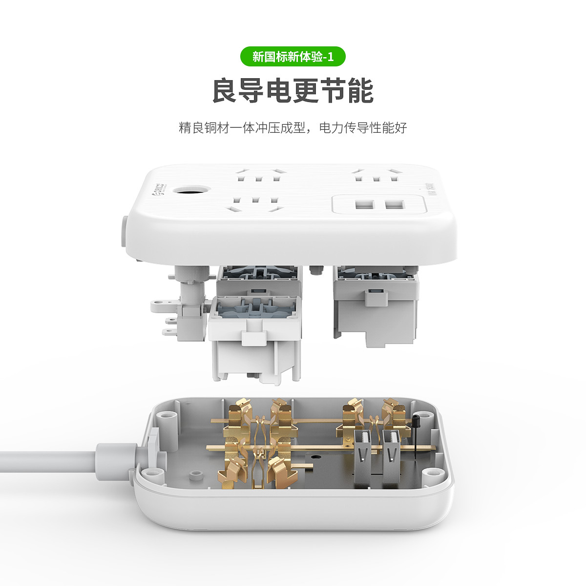 多孔位安全排插,一体冲压成型,5000次插拔不松动,手机无需充电头,拉丝面板,3年质保