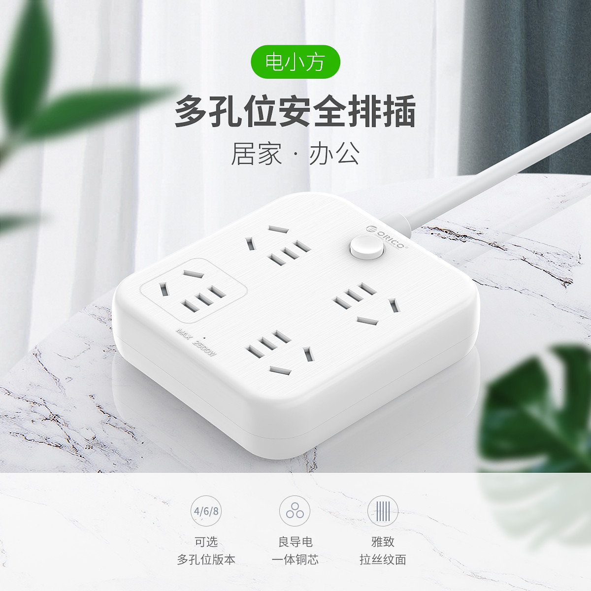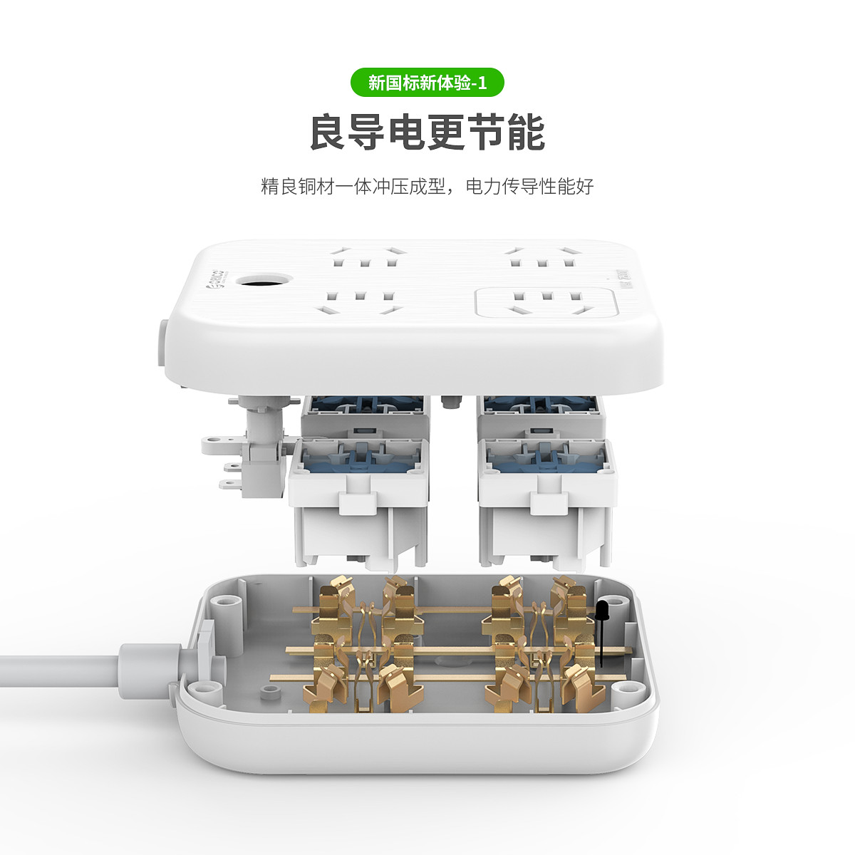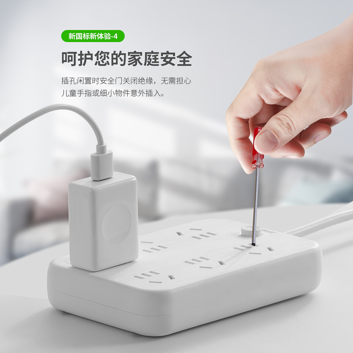 多孔位安全排插,一体冲压成型,5000次插拔不松动,手机无需充电头,拉丝面板,3年质保