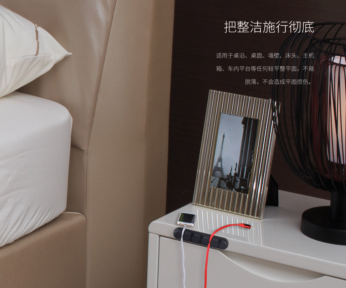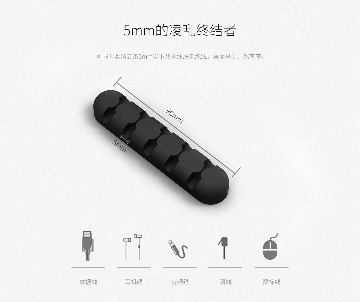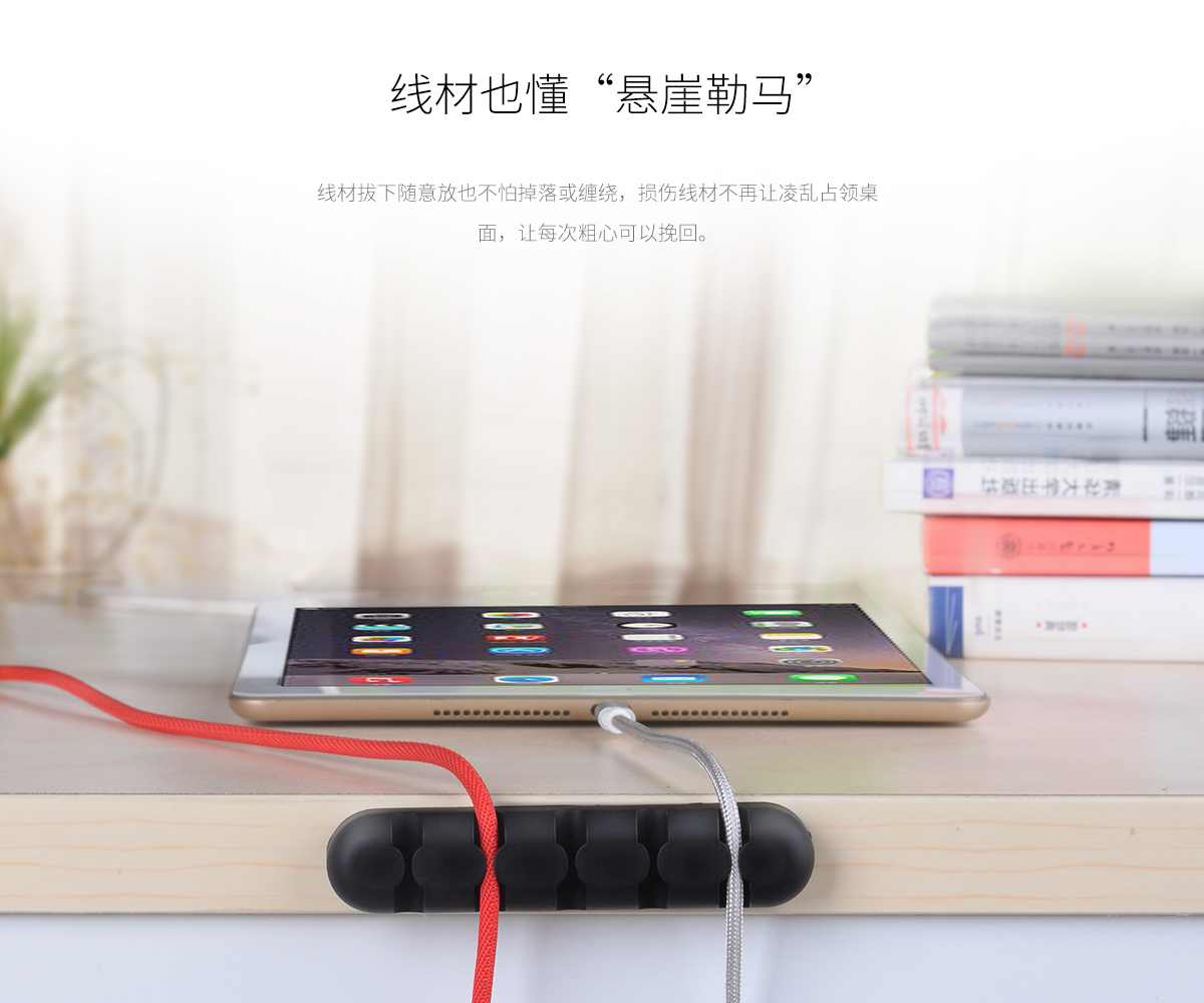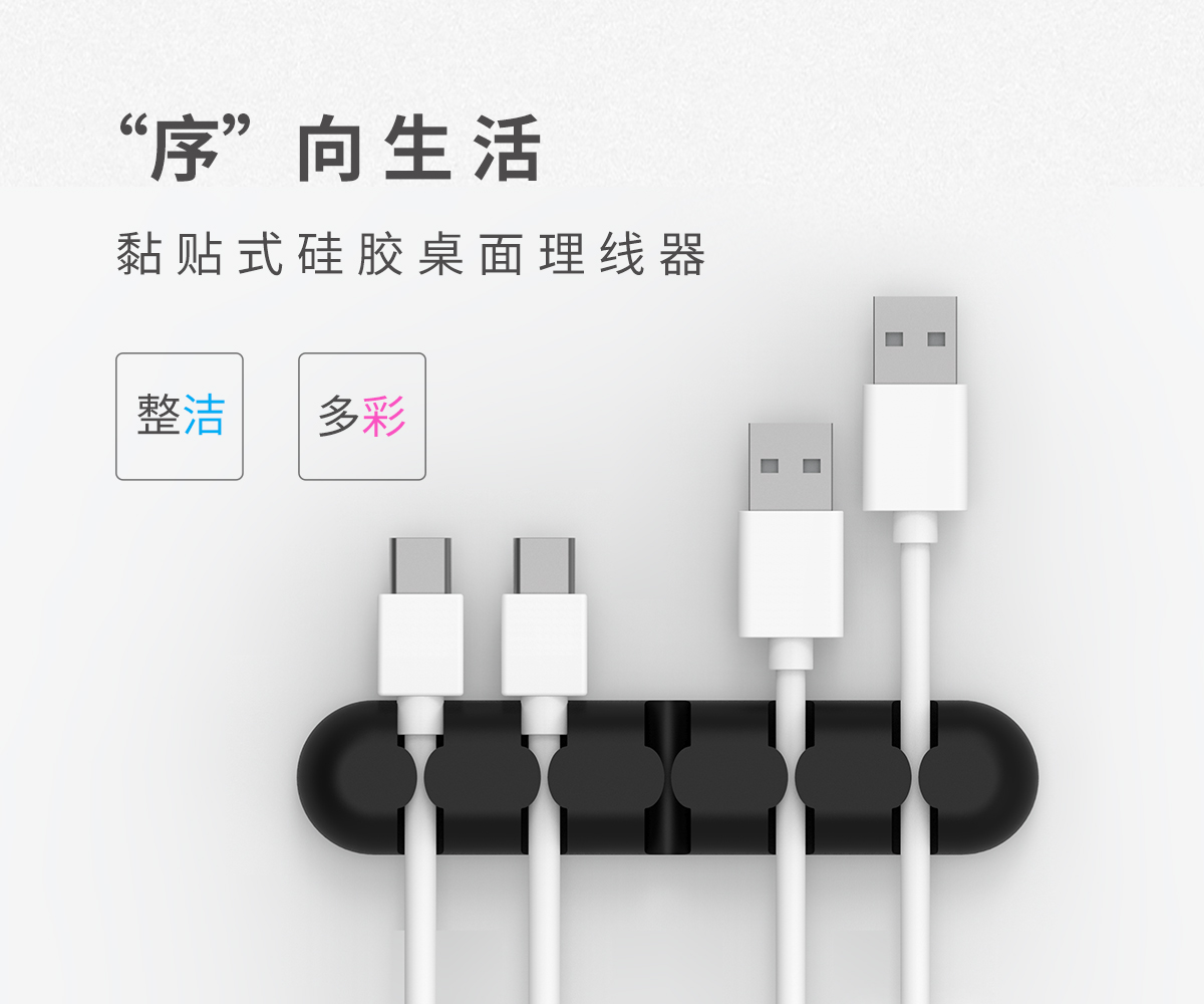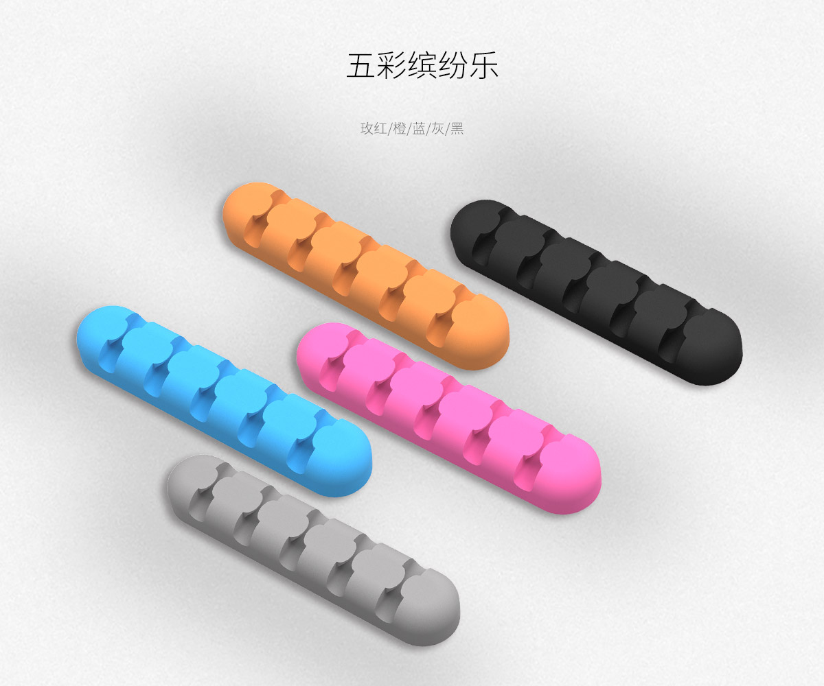多色可选,硅胶材质,尺寸小巧,无痕双面贴,桌面理线器