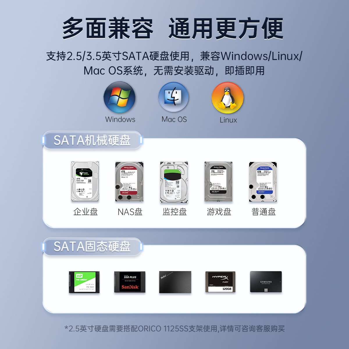 USB 3.0转SATA Revision 3.0,5Gbps高速传输,双核芯片,安全稳定,双重散热,大容量支持,自带锁孔,安全升级,内置电源适配器,稳定运行