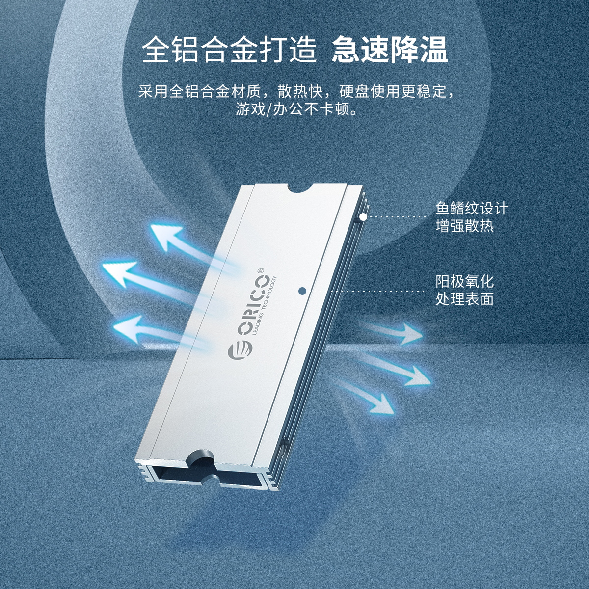 全铝合侧翼金鱼鳍纹表面硬盘散热片