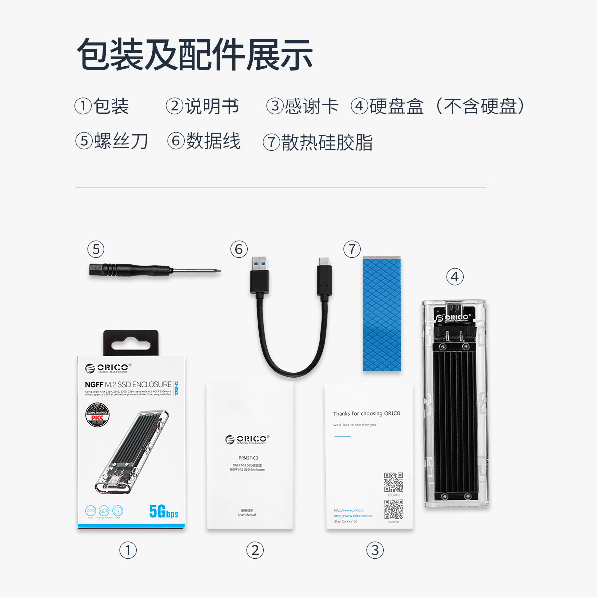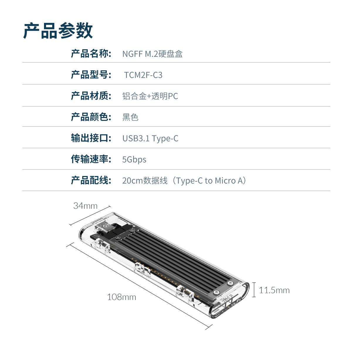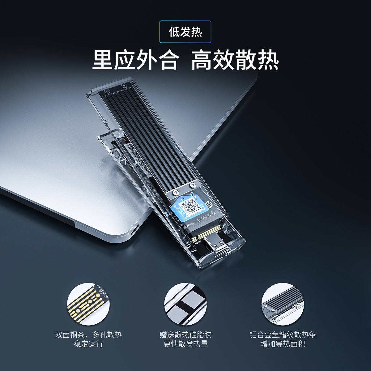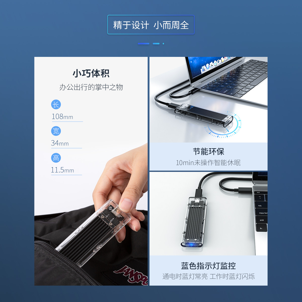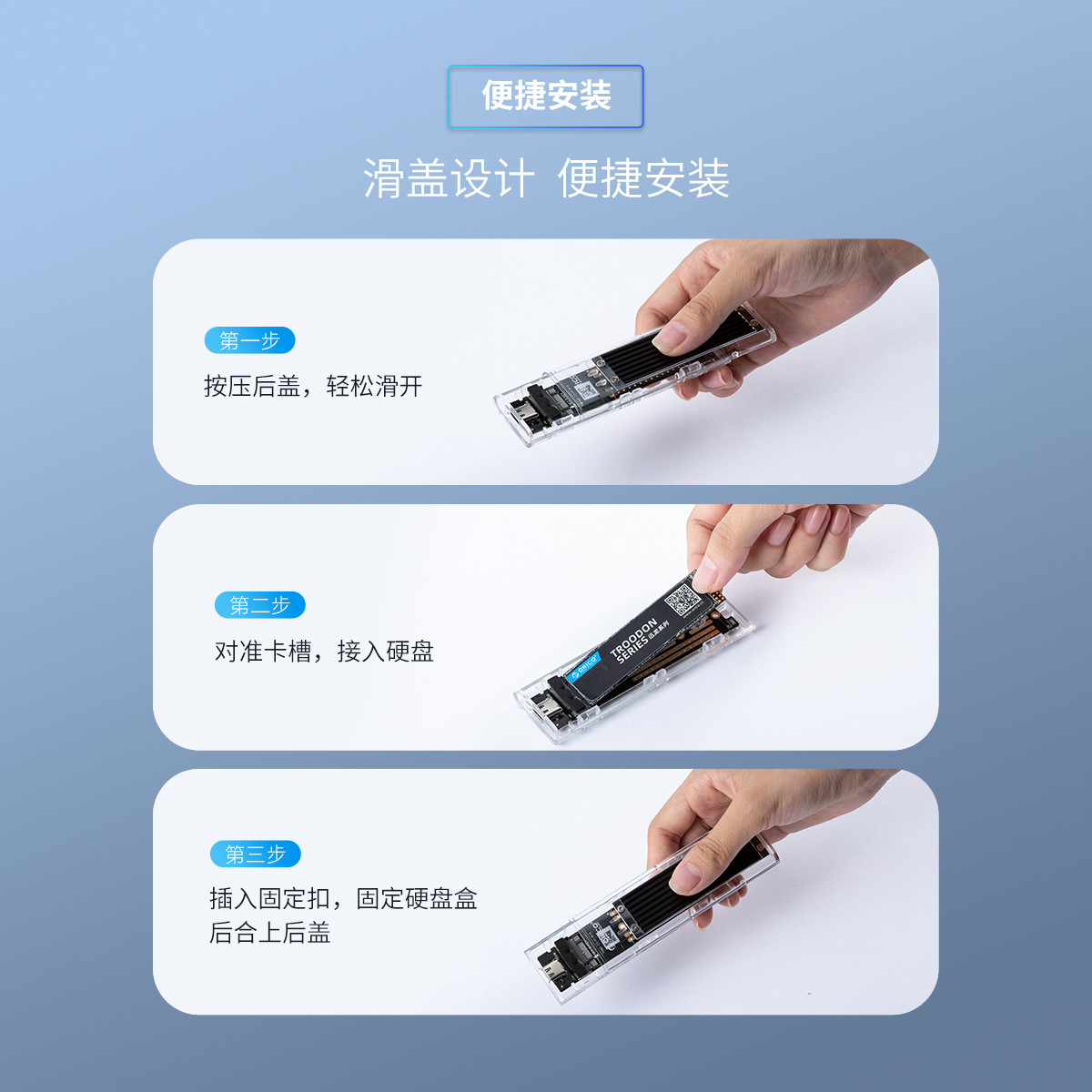 NGFF M.2透明硬盘盒,免工具Type-C接口透明硬盘盒