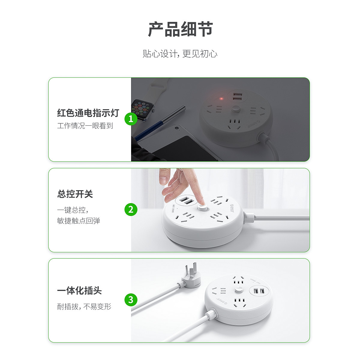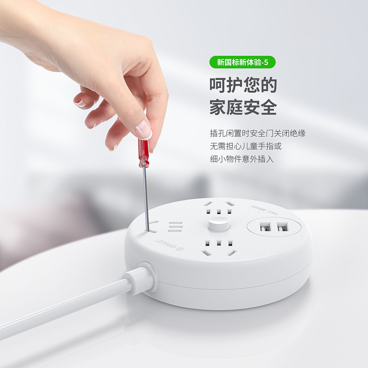 双USB口创意安全排插,电小元智能延长线插座