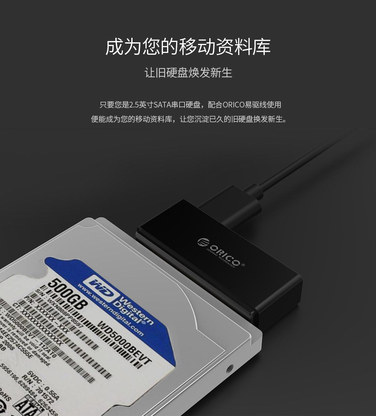 2.5英寸SATA串口硬盘,配合ORICO易驱线使用便能成为你的移动资料库