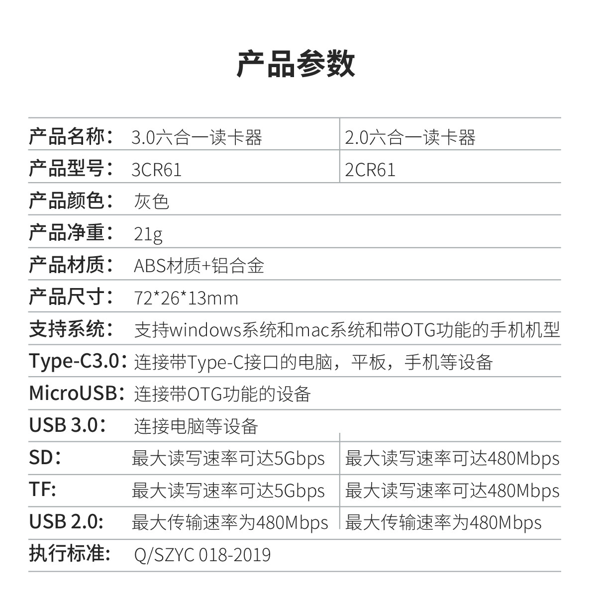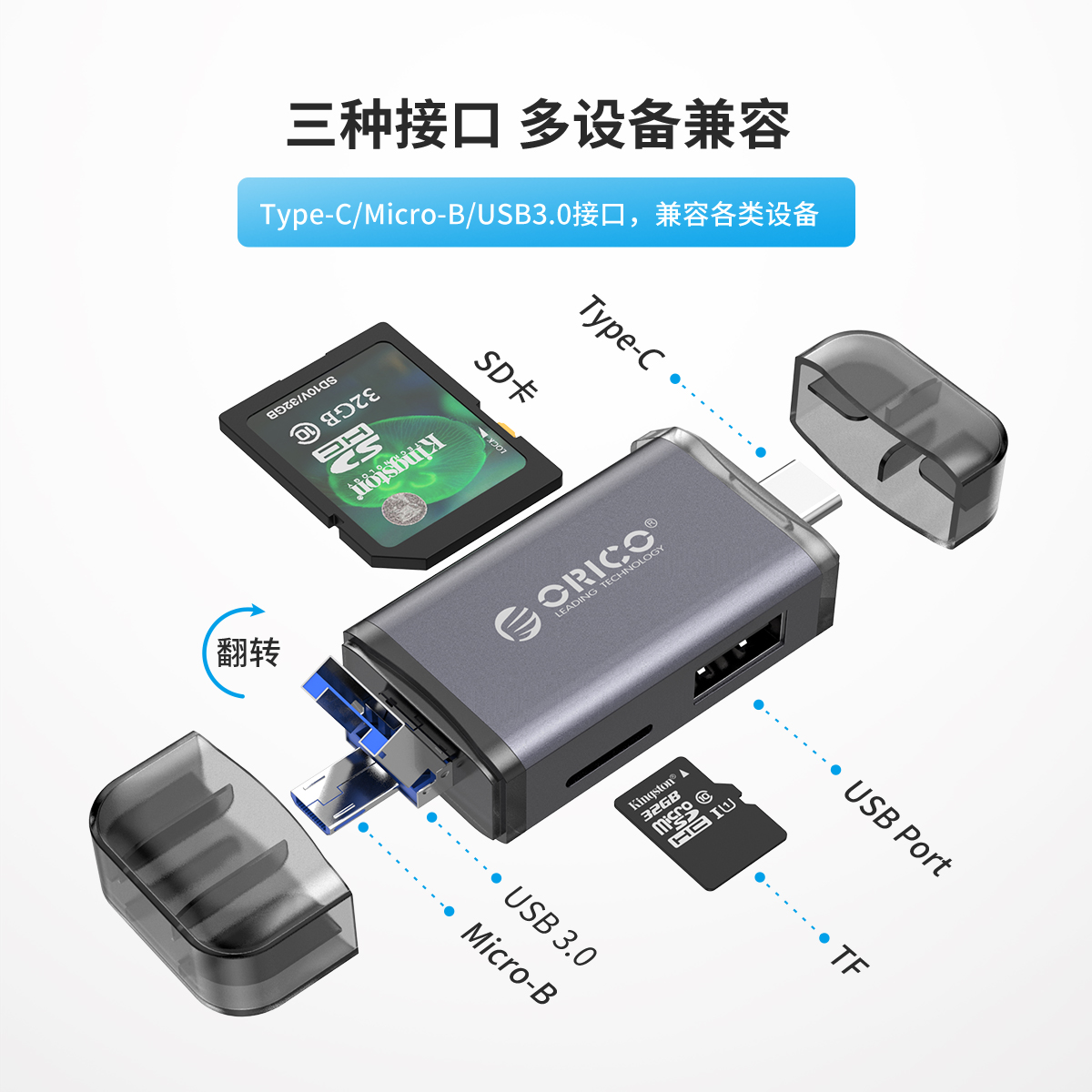 USB3.0疾速传输六合一读卡器