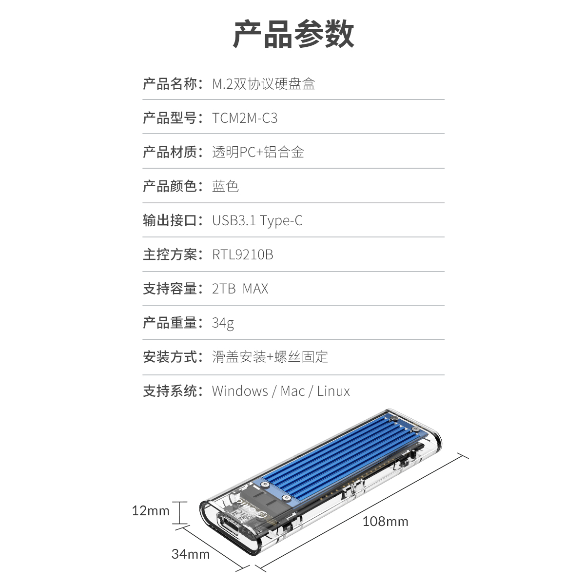 M.2/mSATA硬盘盒