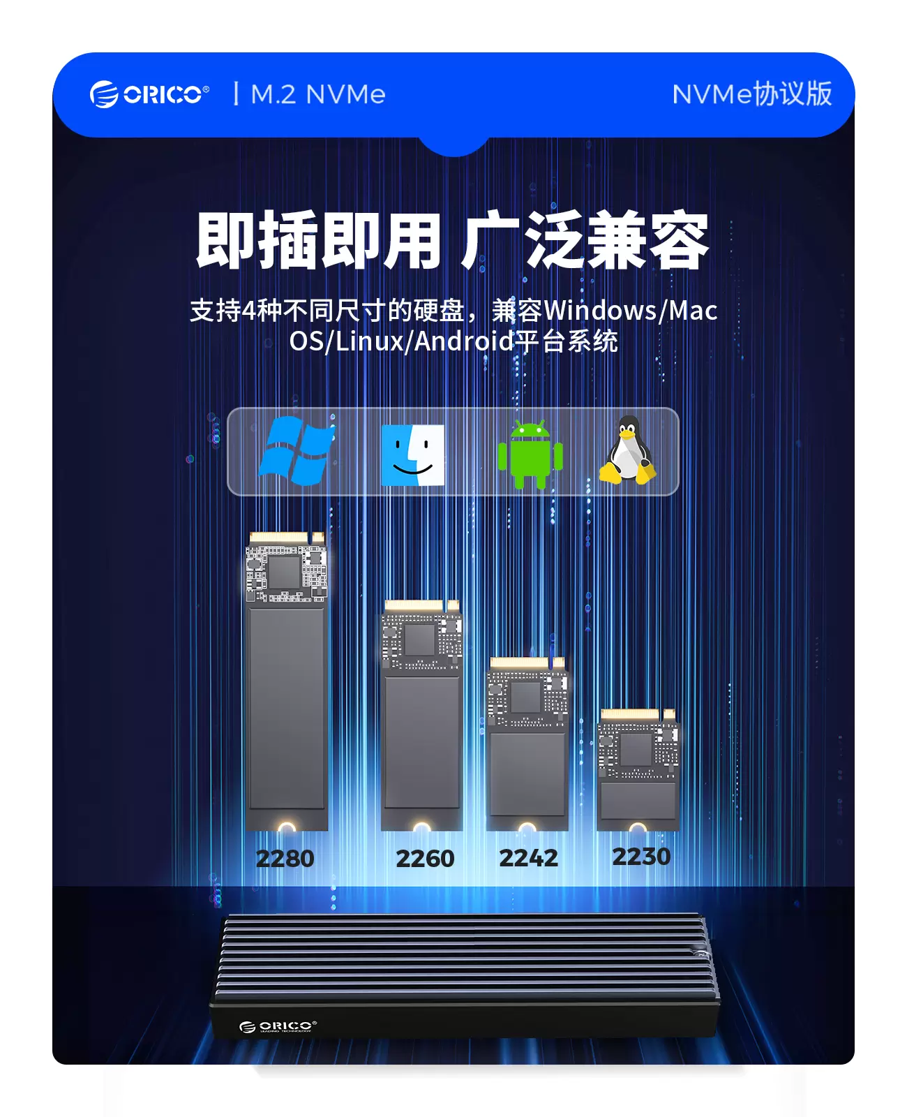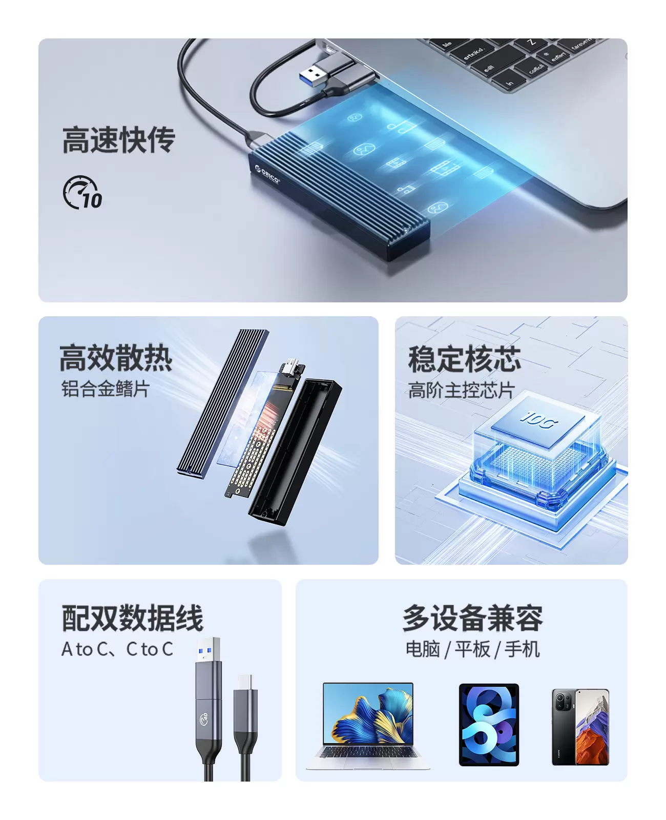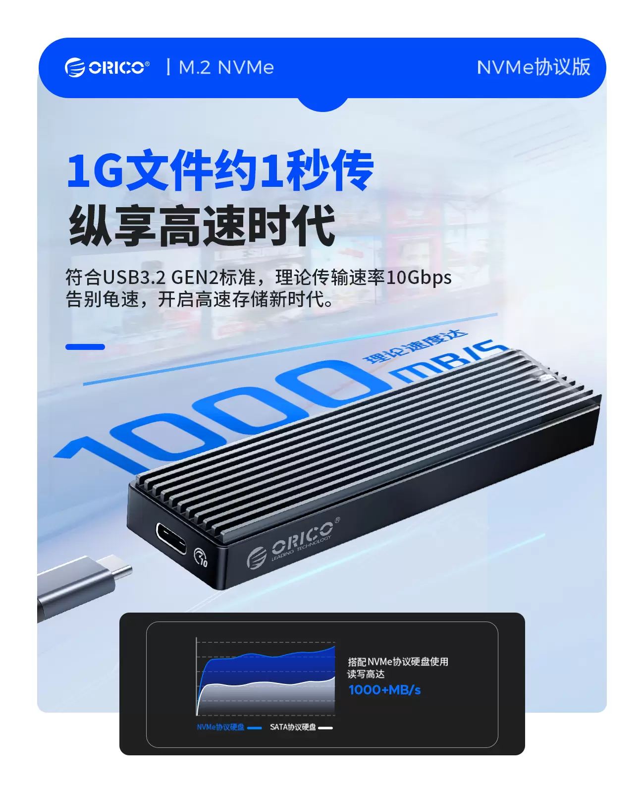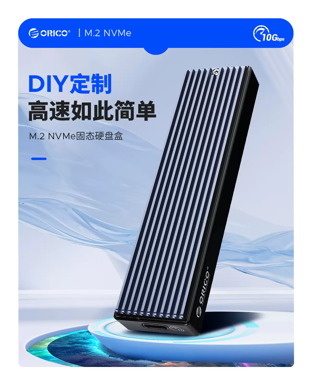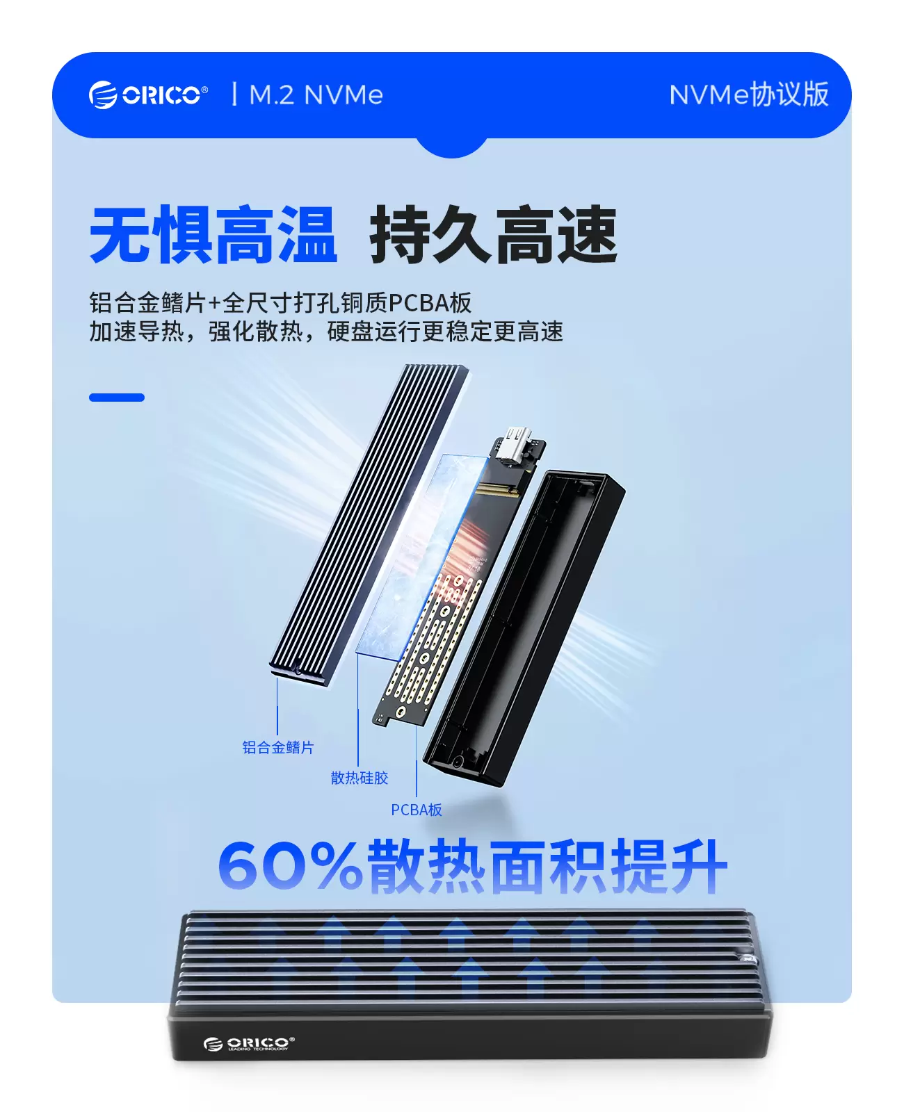 10Gbps M.2 NVME硬盘盒,条纹沟壑加速散热