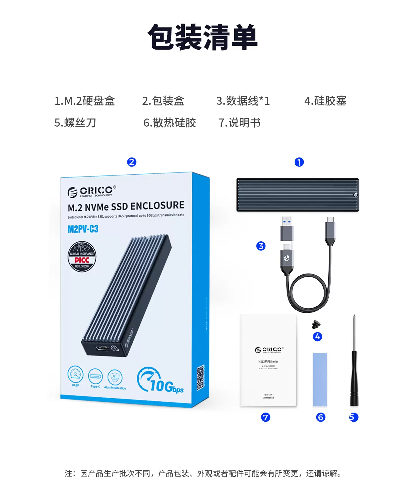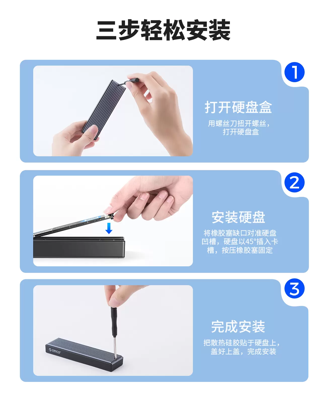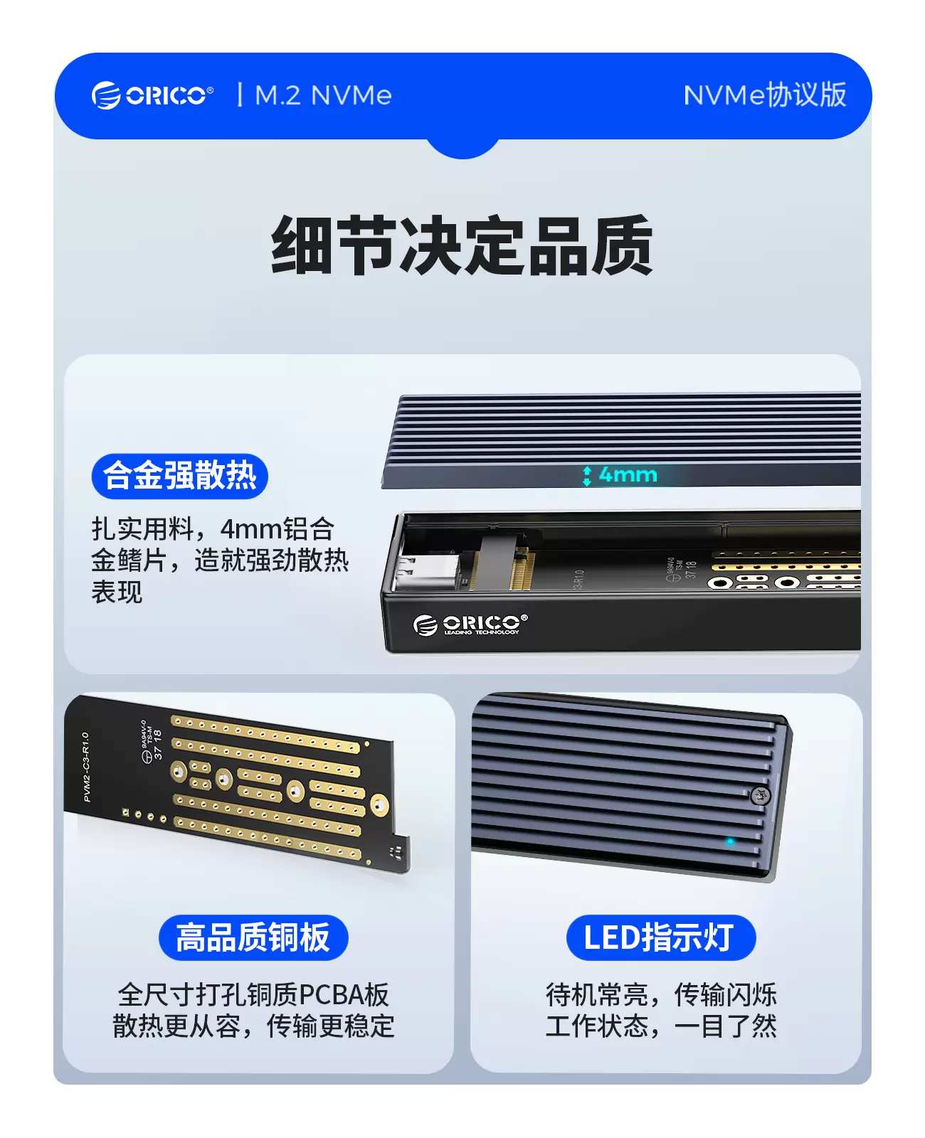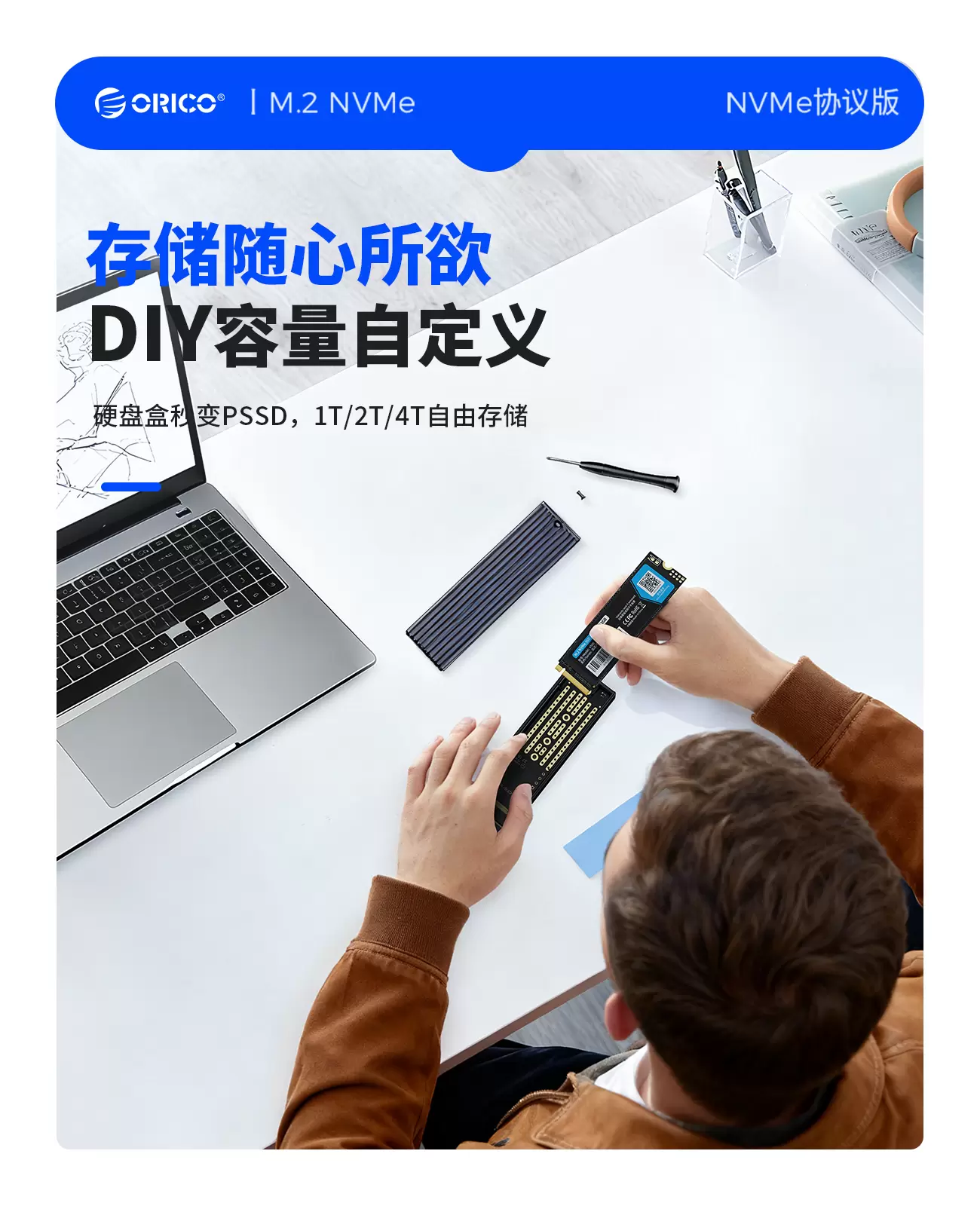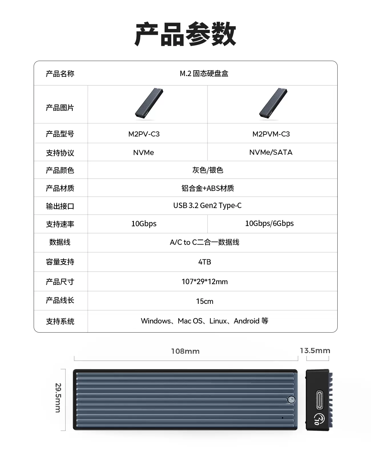 10Gbps M.2 NVME硬盘盒,条纹沟壑加速散热