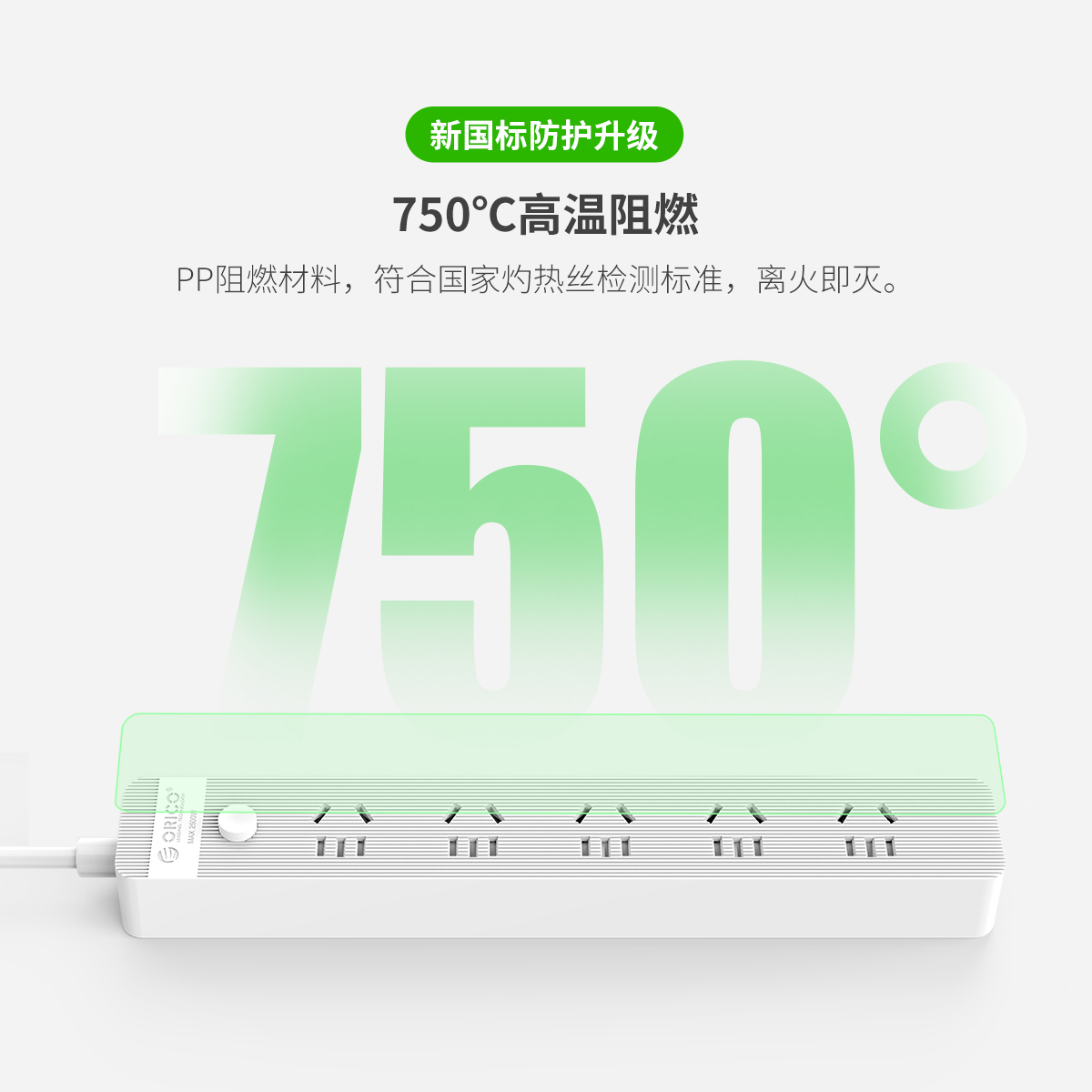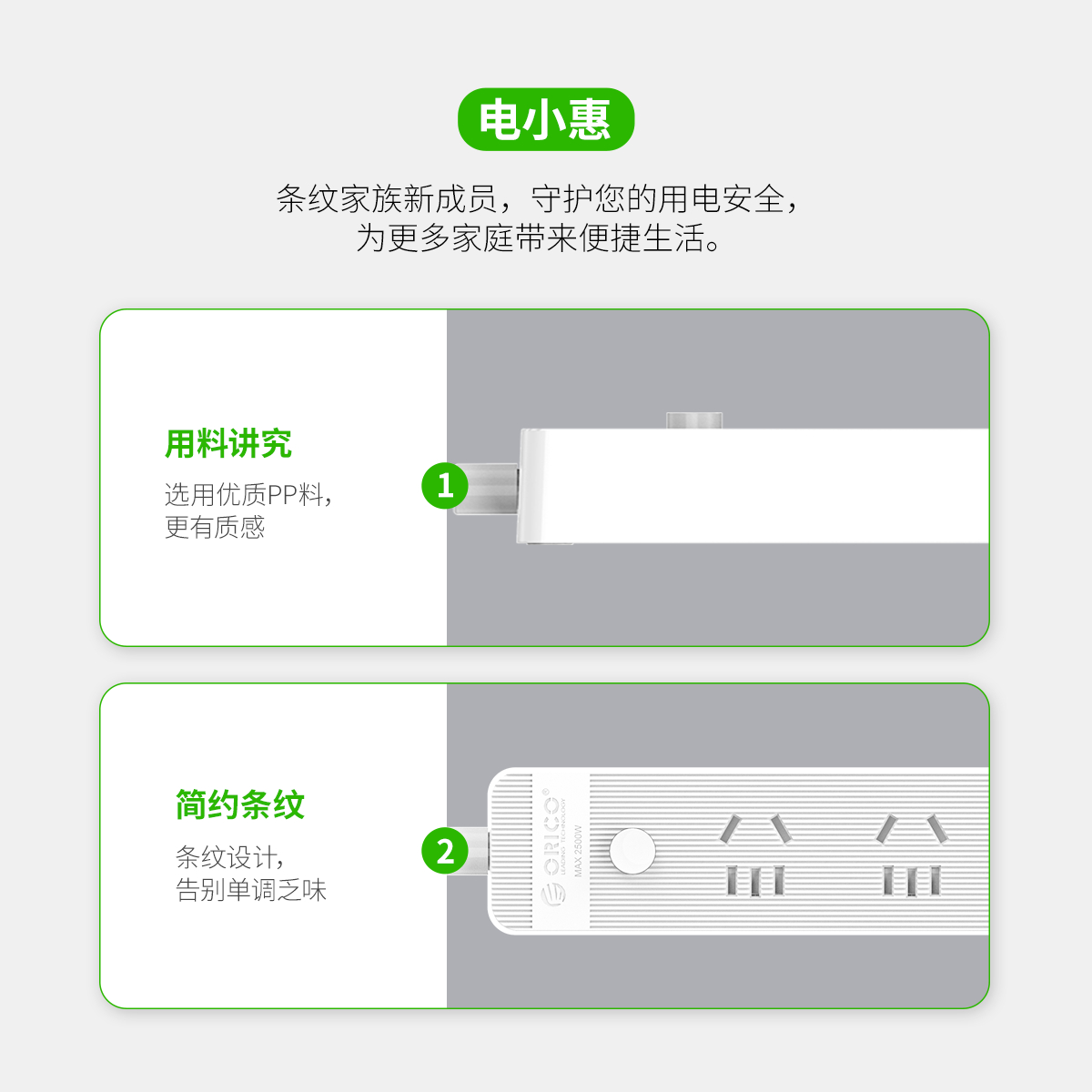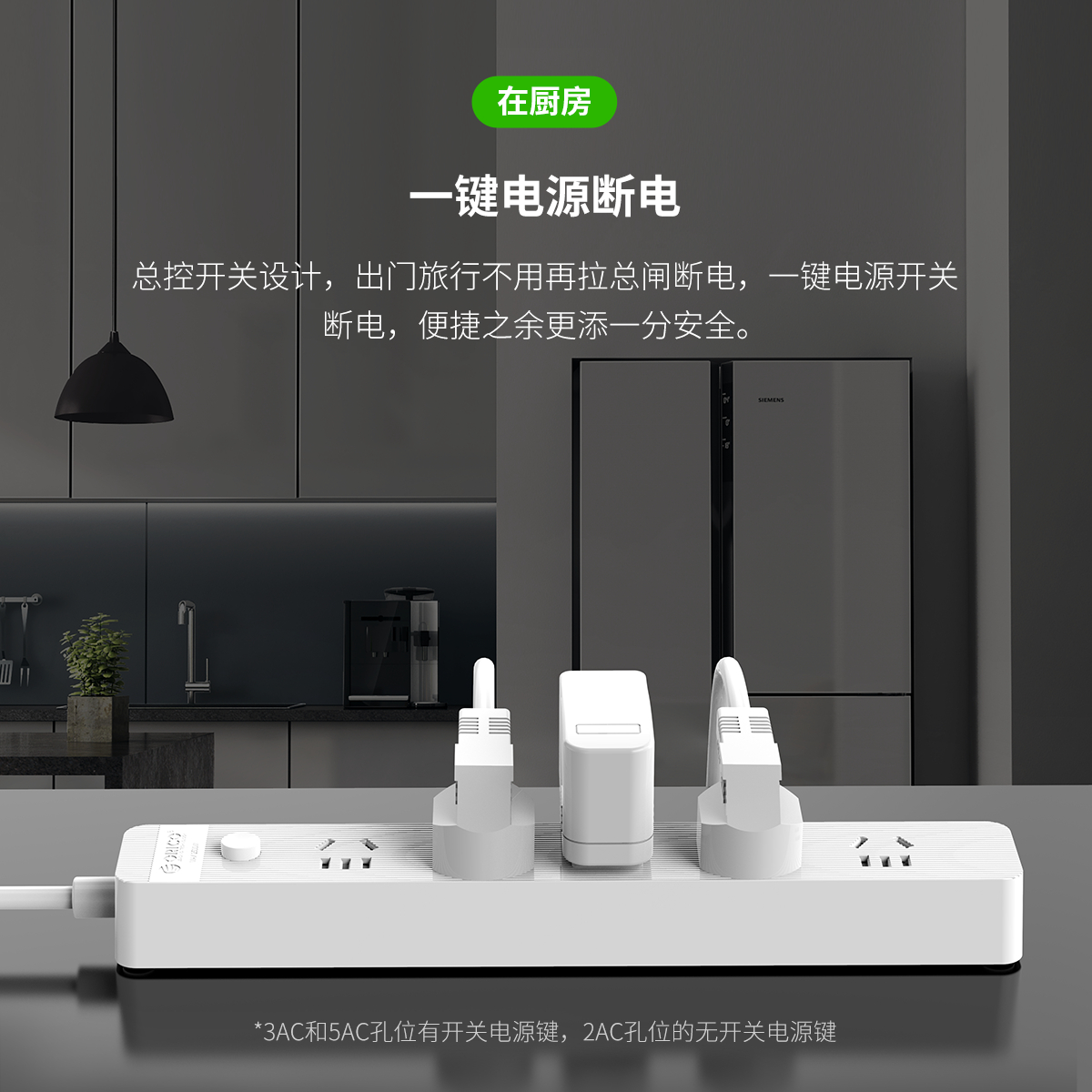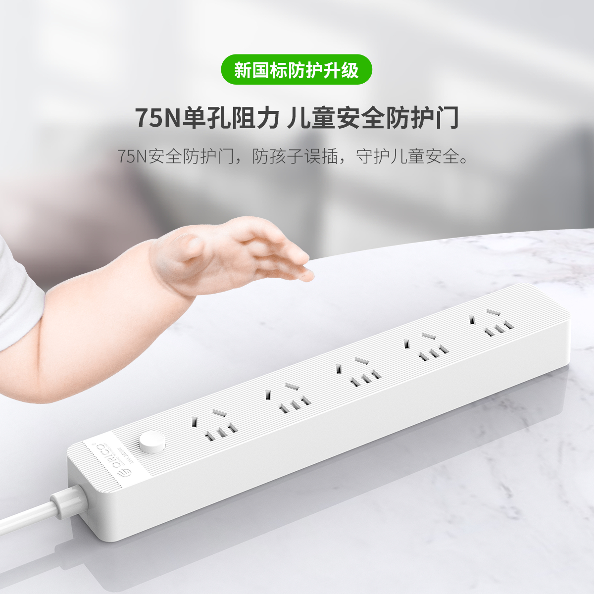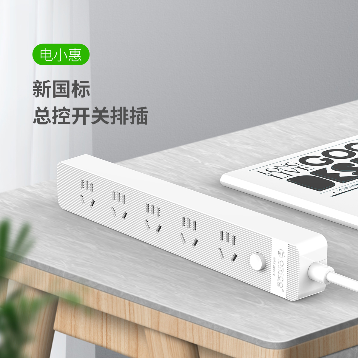 总控开关排插,简约条纹,一键电源断电,安全用电方便节能,三芯一体式铜芯线