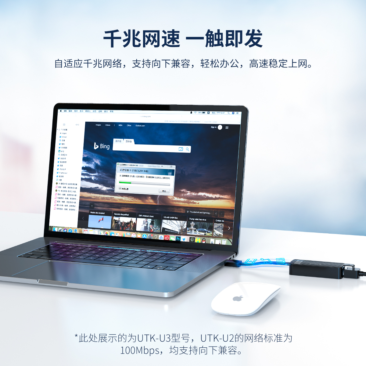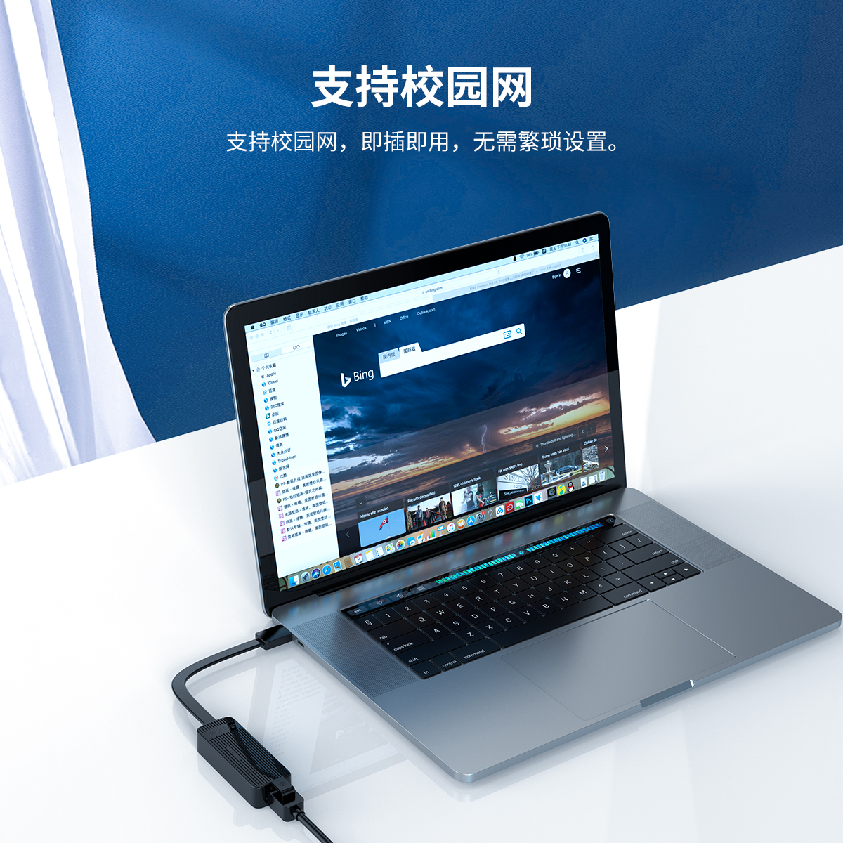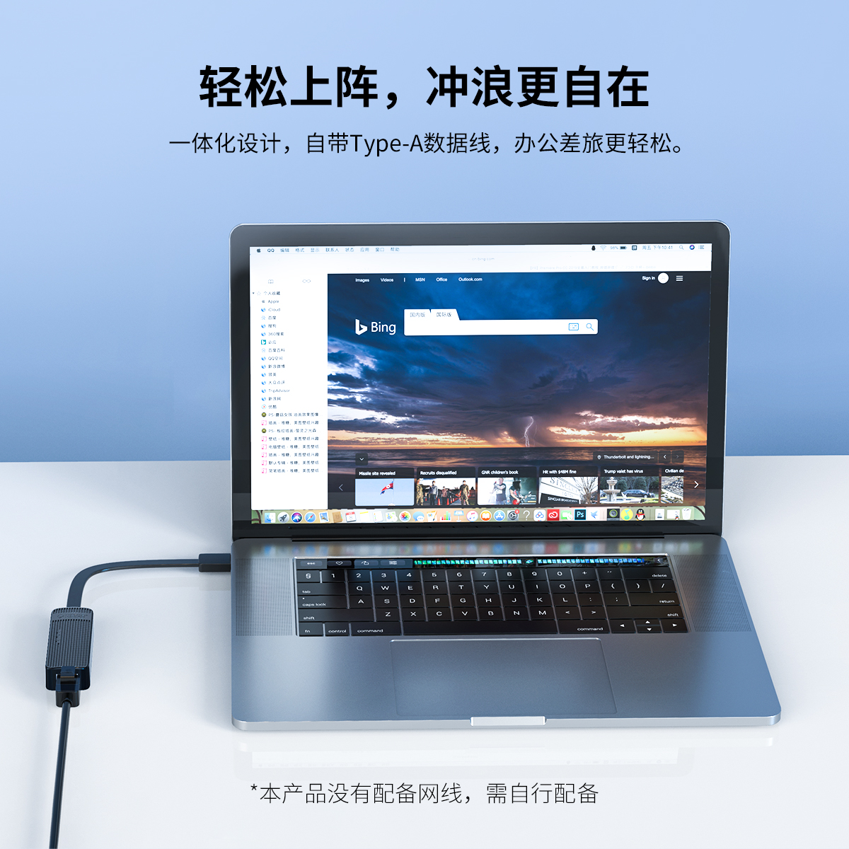自适应百兆网络,支持向下兼容,轻松办公,支持校园网,表面的条纹设计搭配侧面的亮面处理