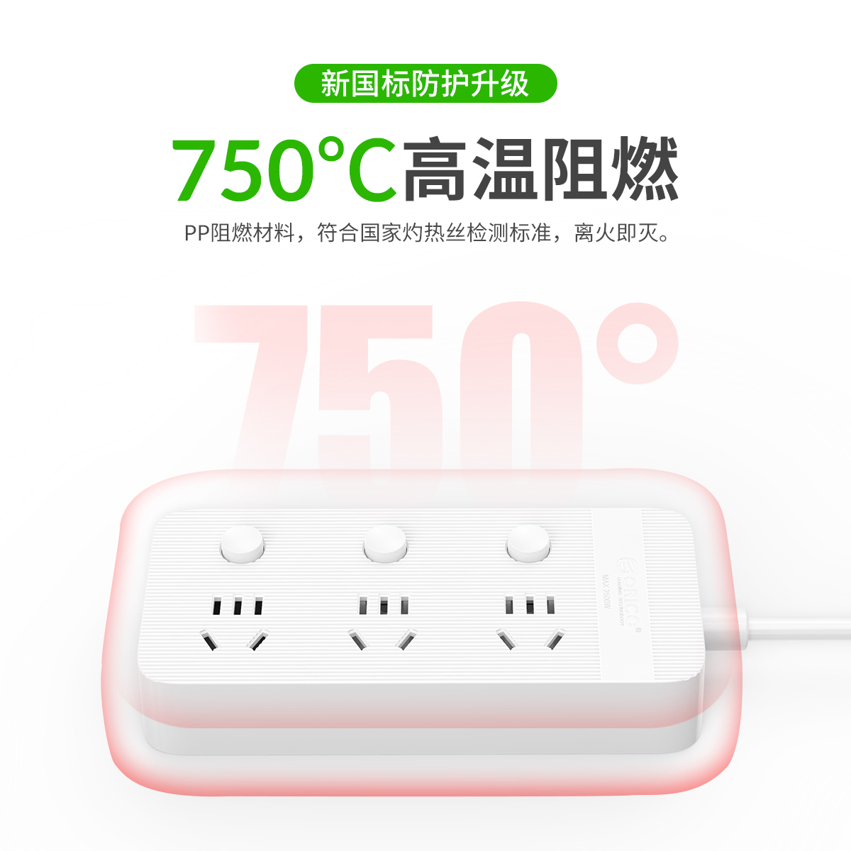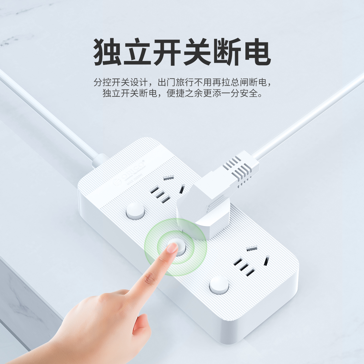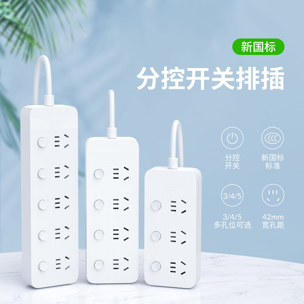 分控开关排插,分控开关排插,三芯一体式铜芯线 250OW高功率下持续使用不软化、不变形