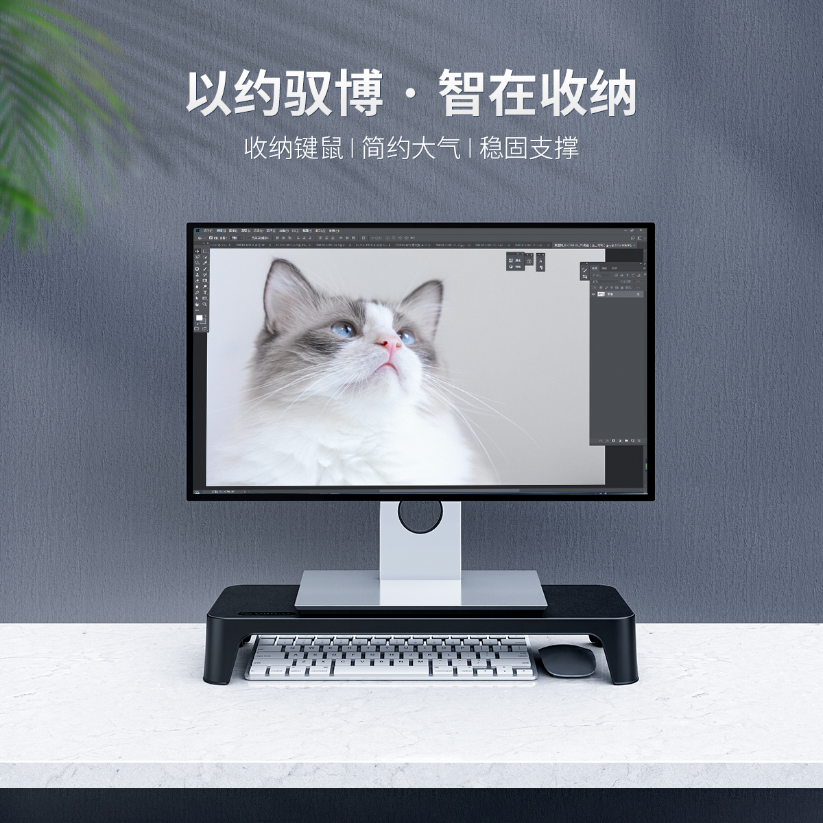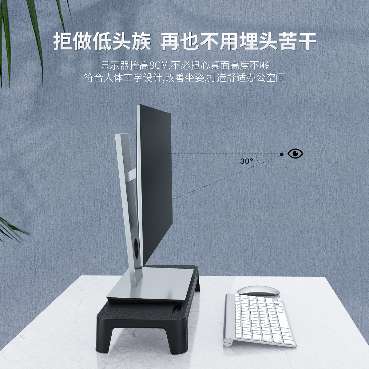 收纳键鼠|简约大气|稳固支撑 显示器抬高8CM 厚实的ABS材质打造