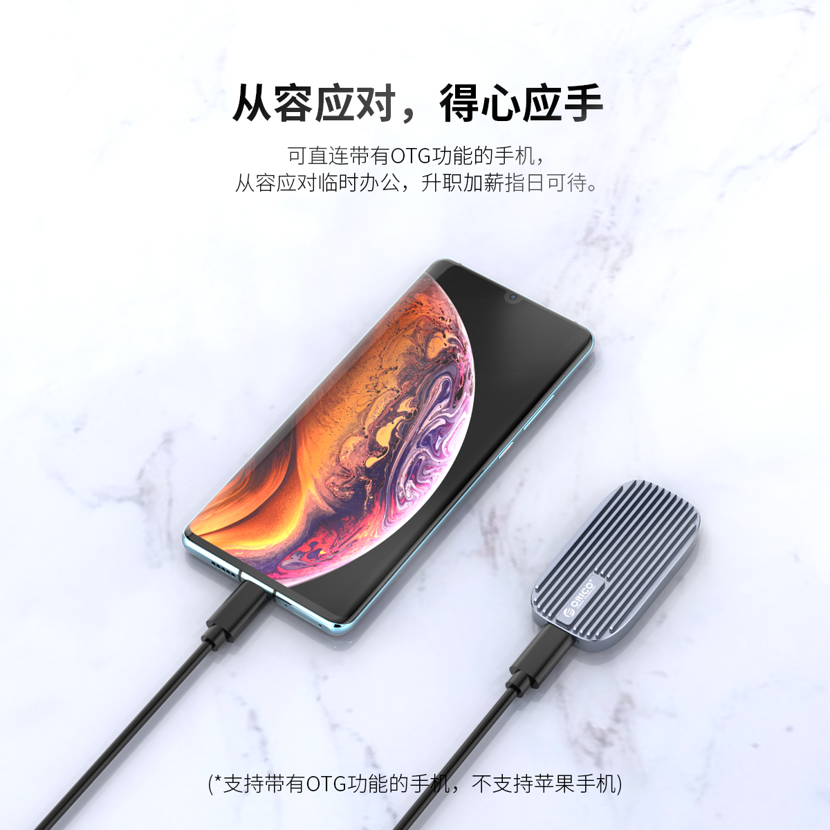 USB 3.1固态移动硬盘,OTG功能,支持UASP加速协议,52OMB/s强劲动力,配有一条CTOA和C TOC二合一数据线,