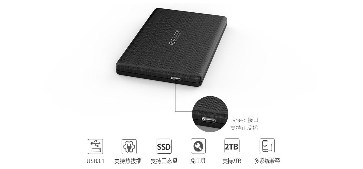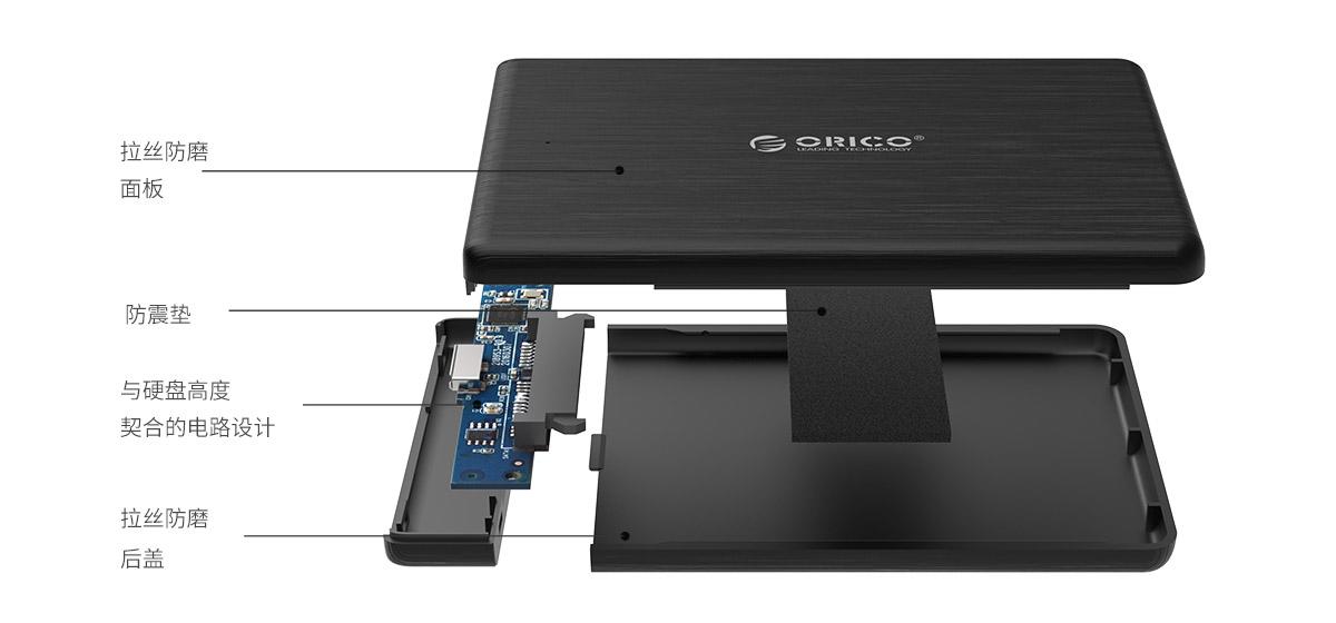支持2.5英寸7mm厚SATA串口机械硬盘/SSD,兼容Windows/Mac/Linux等市面上主流操作系统。