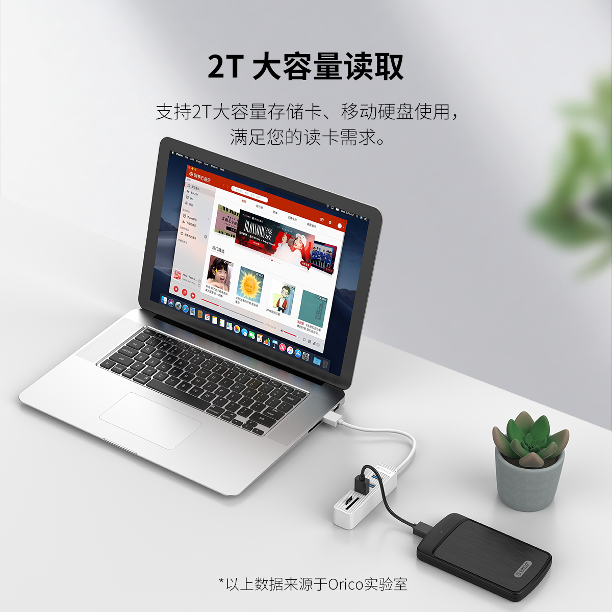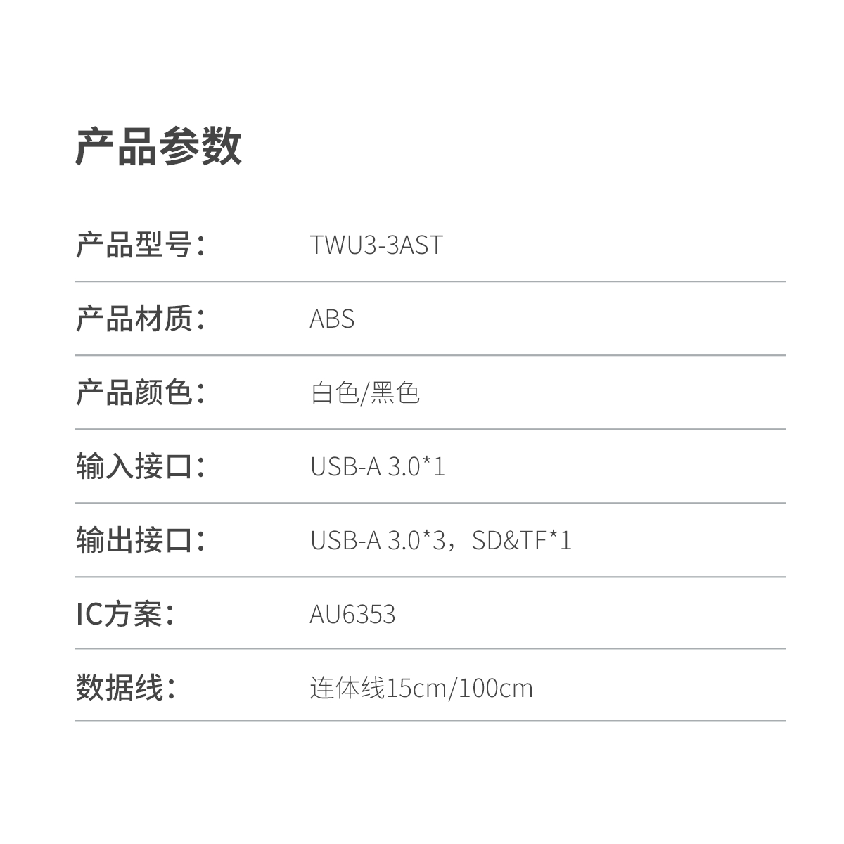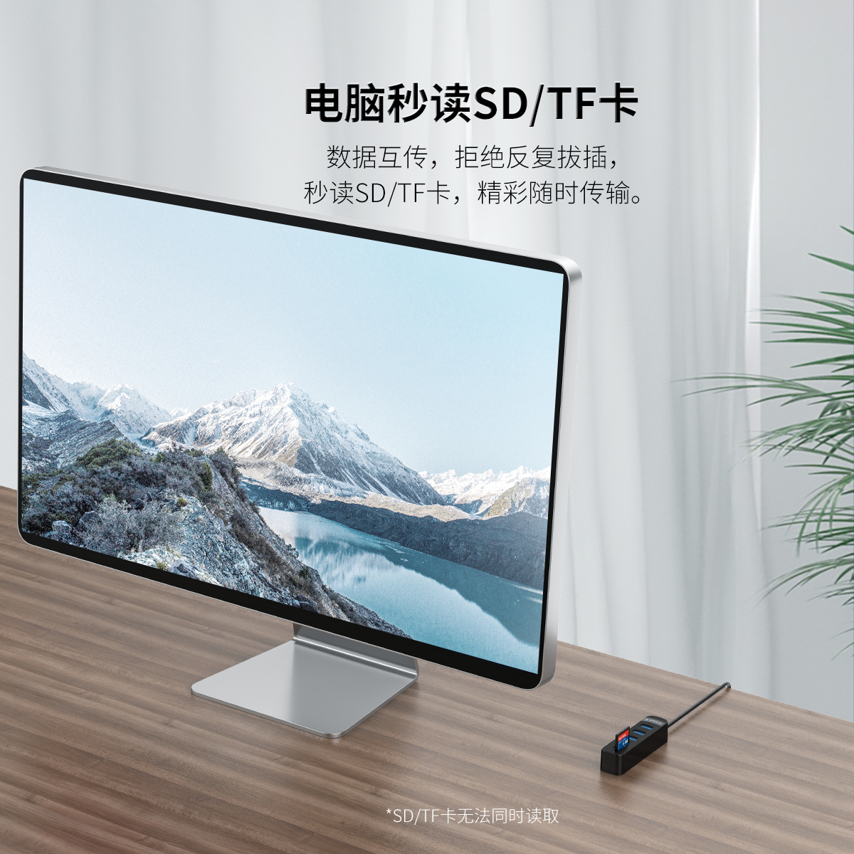 支持同时扩展3个USB设备又能读取SD/TF卡,5Gbps传输速率,支持2T大容量存储卡、移动硬盘使用