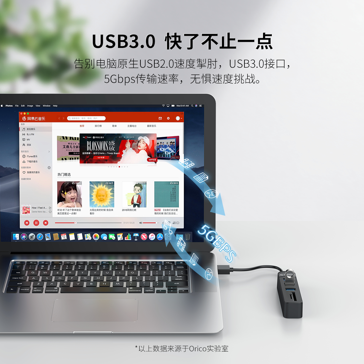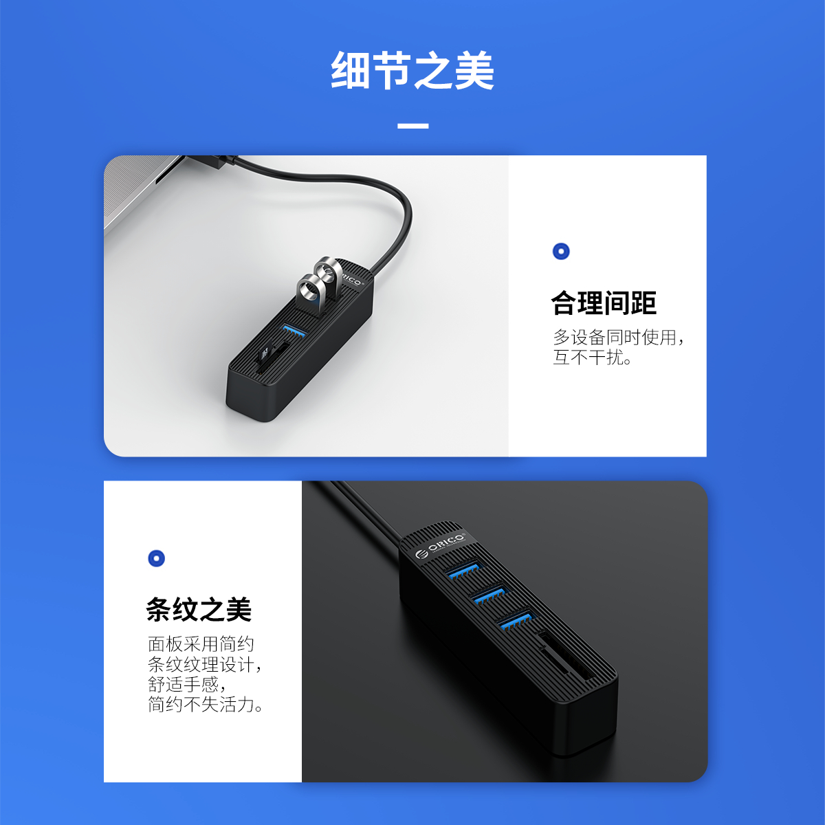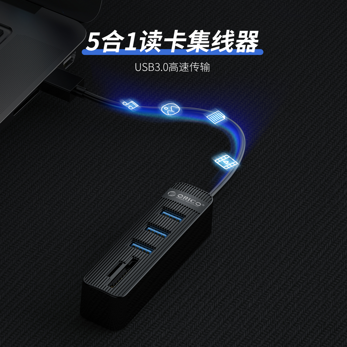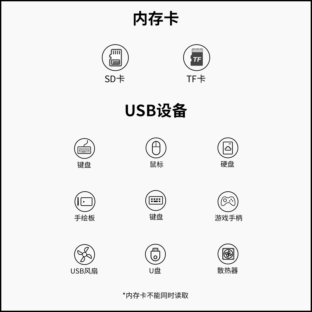 支持同时扩展3个USB设备又能读取SD/TF卡,5Gbps传输速率,支持2T大容量存储卡、移动硬盘使用