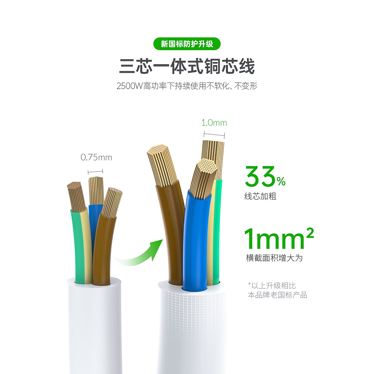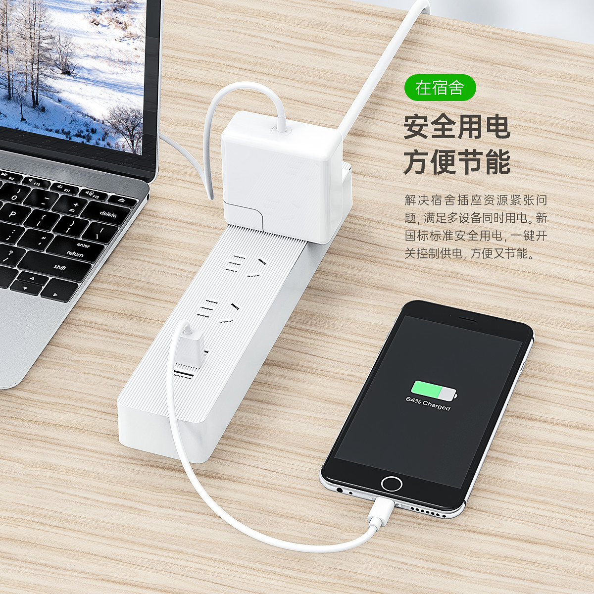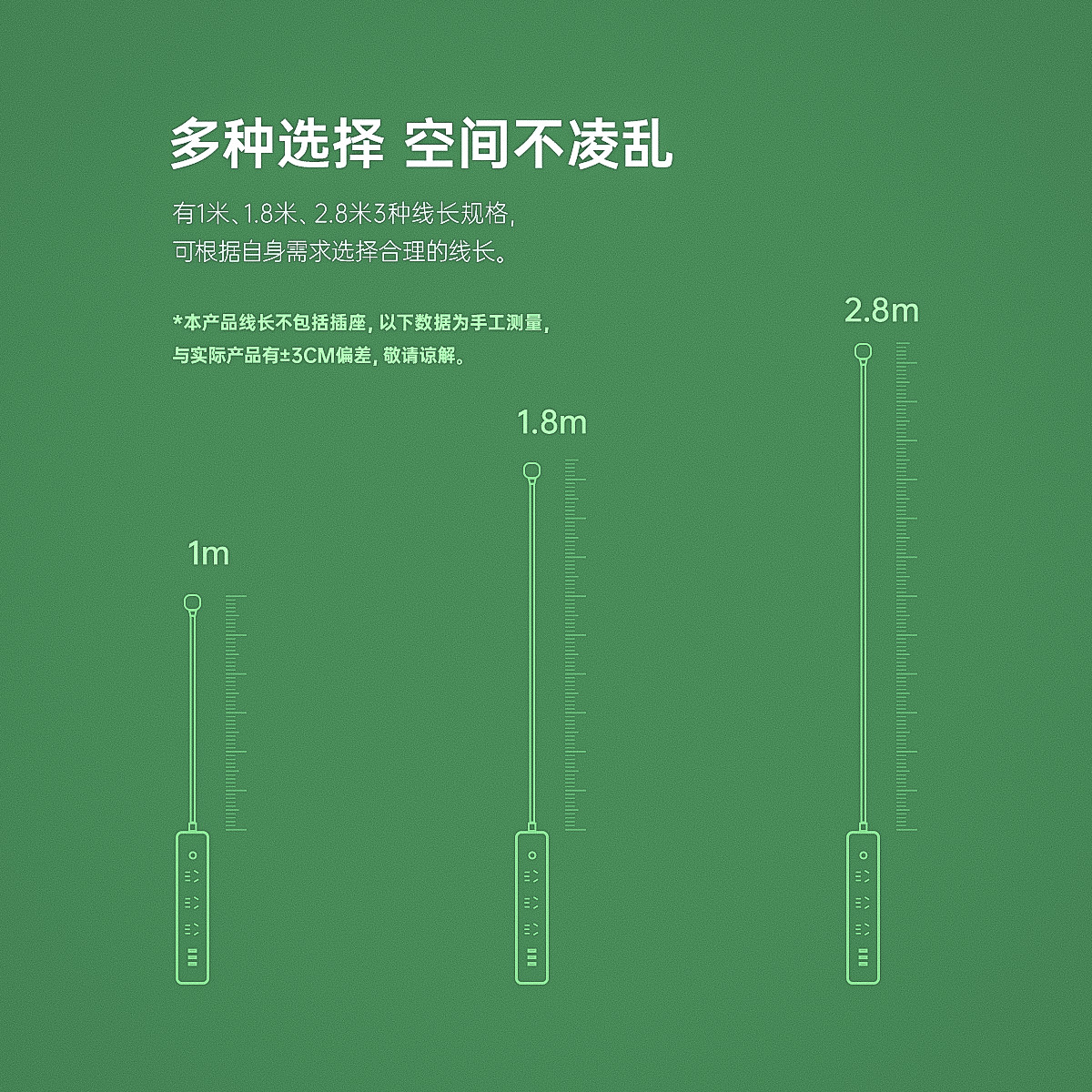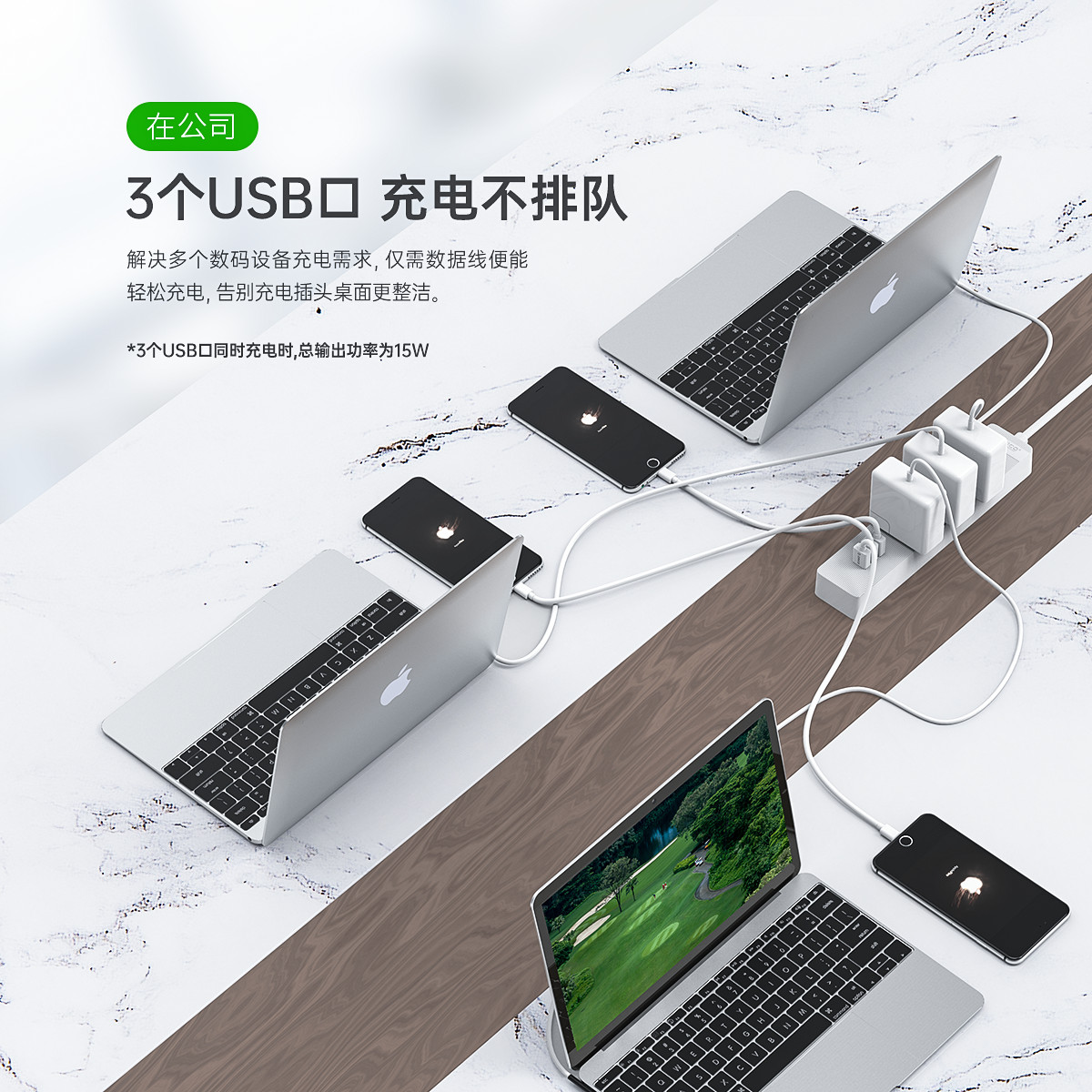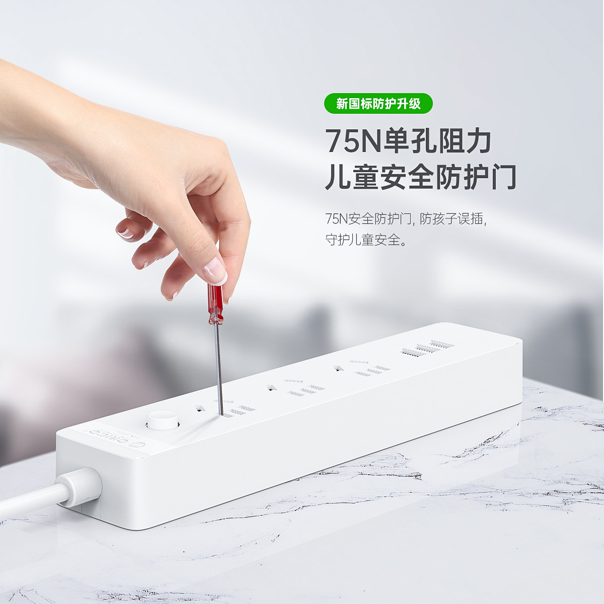 智能USB排插,USB单口MAX12W智能充电,750°C高温阻燃,三芯一体式铜芯线,有1米、1.8米、2.8米3种线长规格,