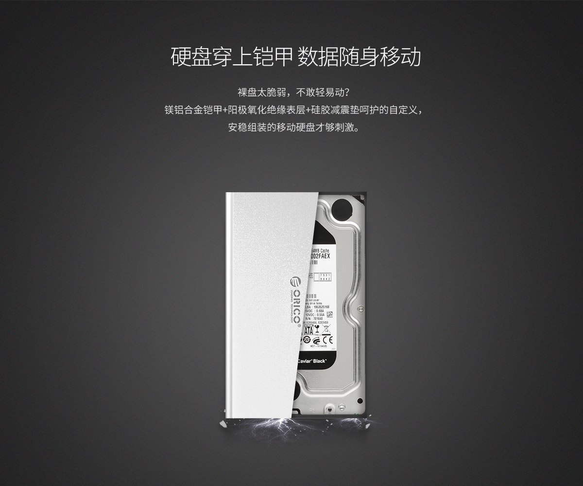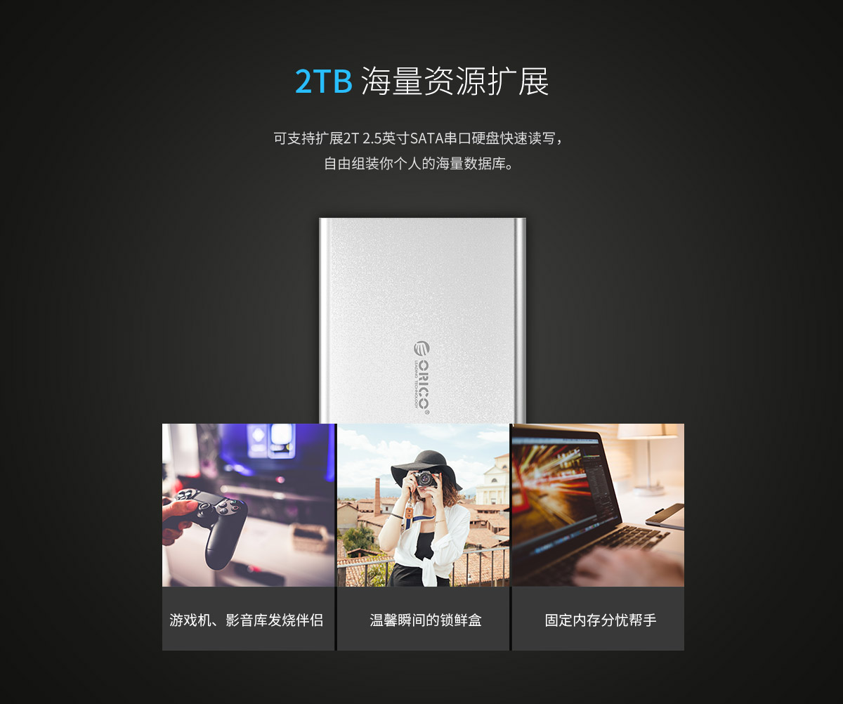 2.5英寸铝合金USB3.0移动硬盘盒,支持2TB容量
