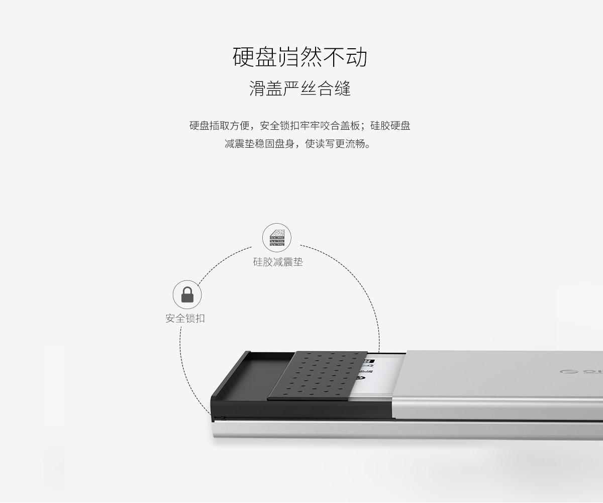 硬盘插取方便,硅胶硬盘减震垫稳固盘身,使读写更流畅。
