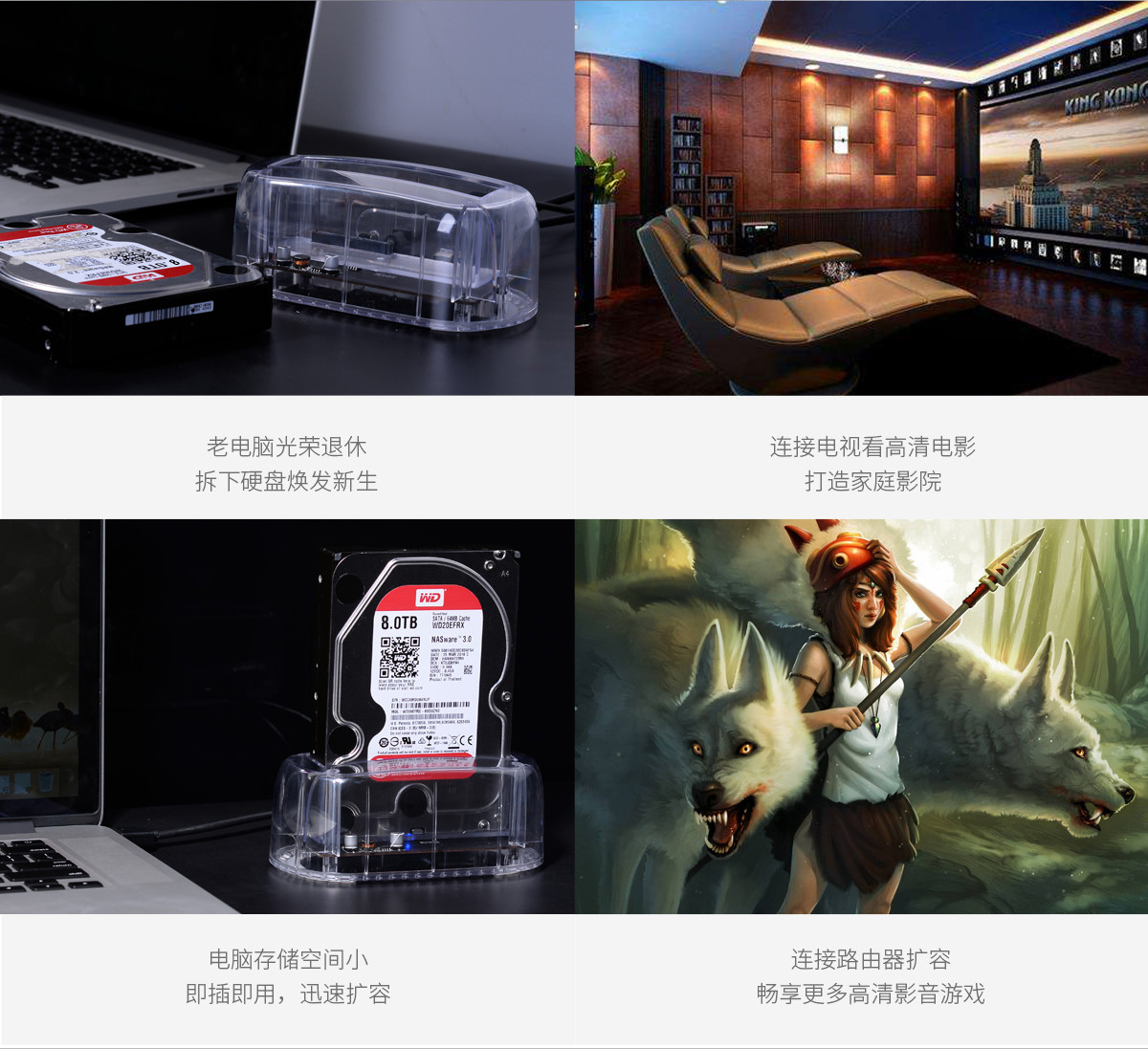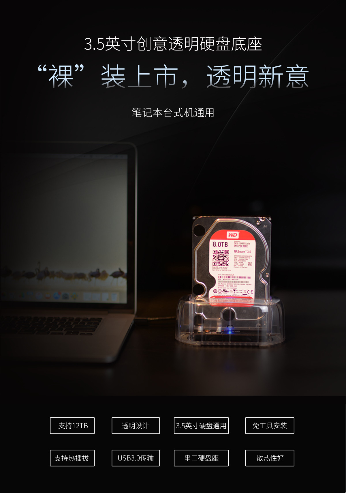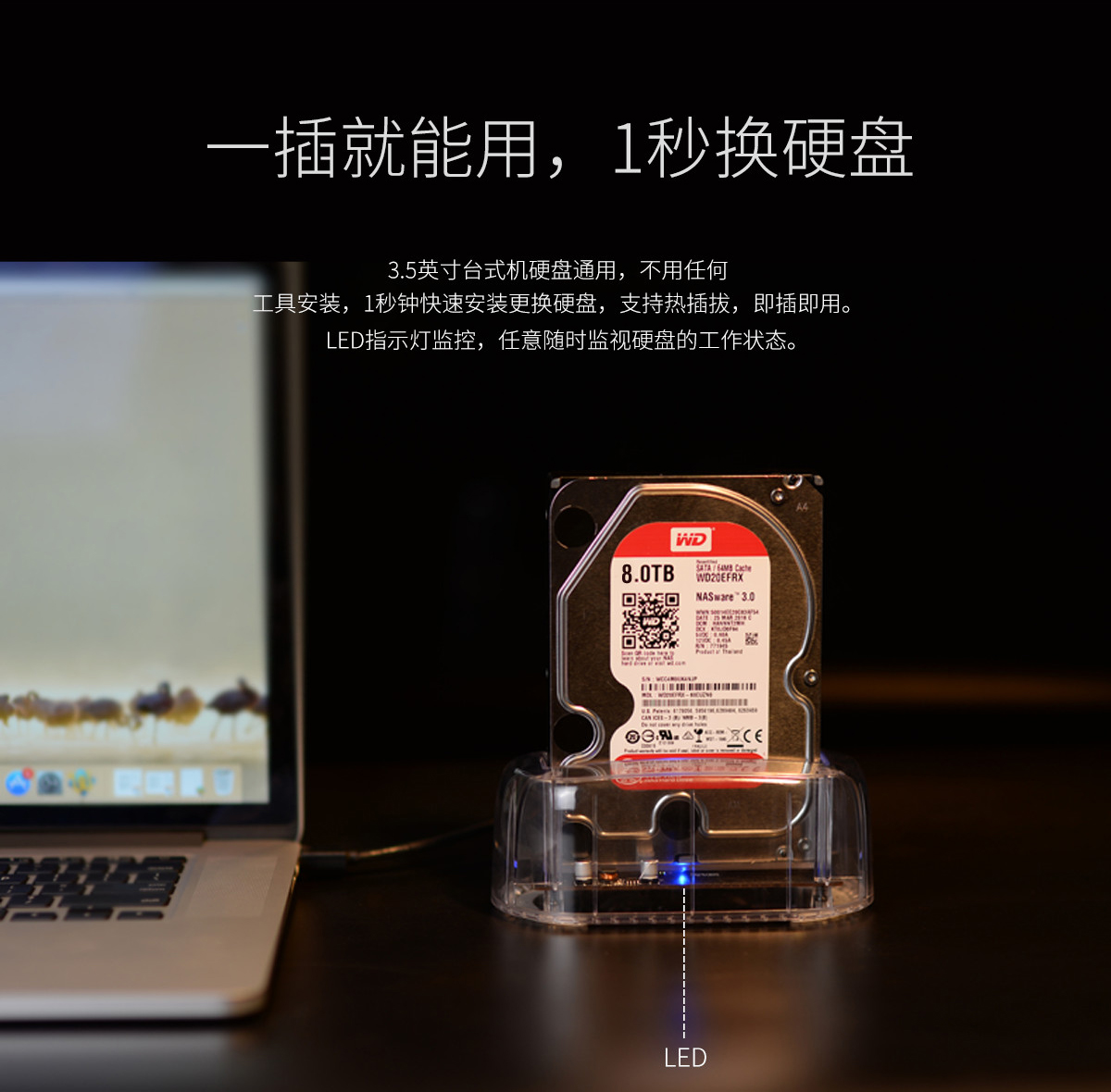 透明硬盘座,通用所有SATA串口硬盘/笔记本台式机,免工具安装