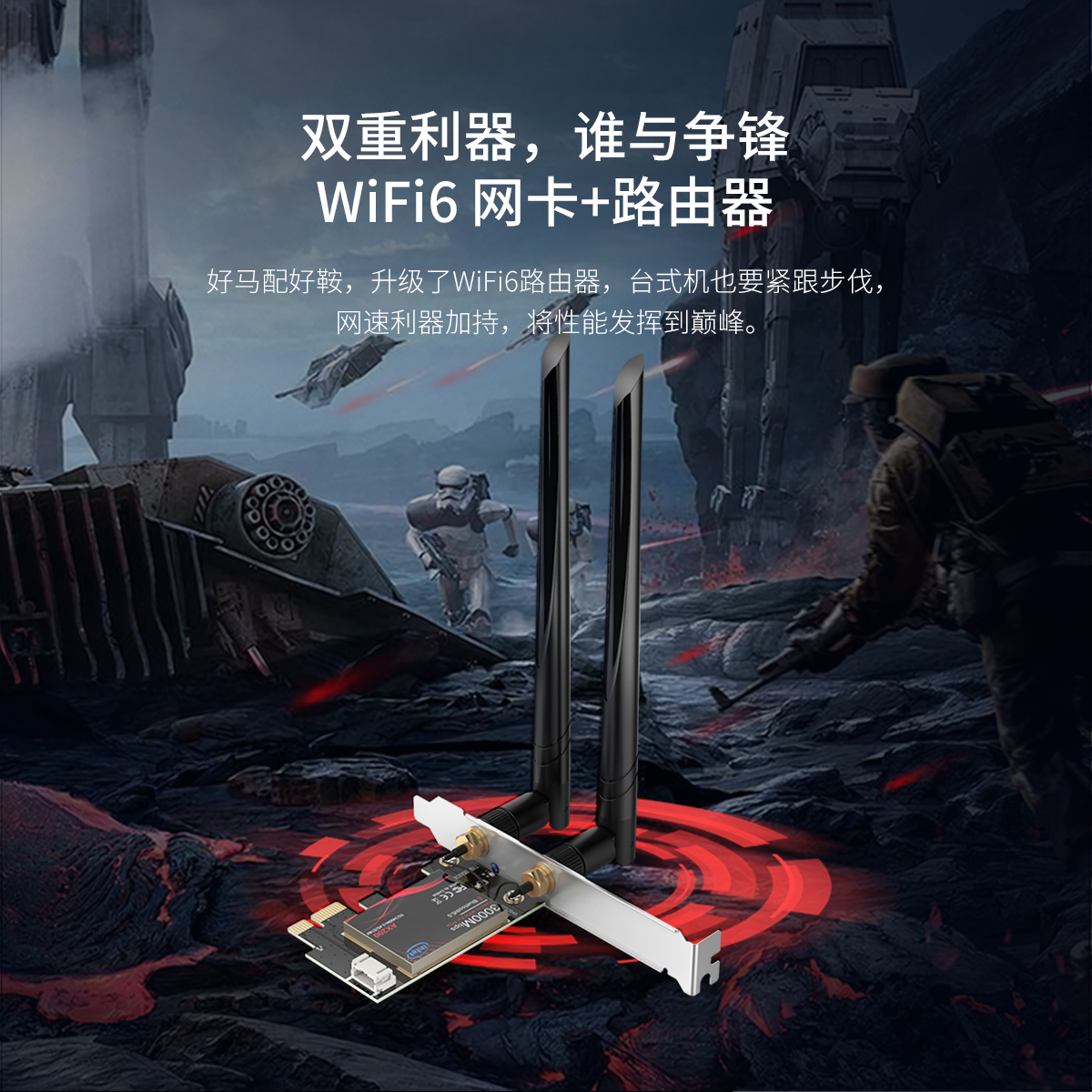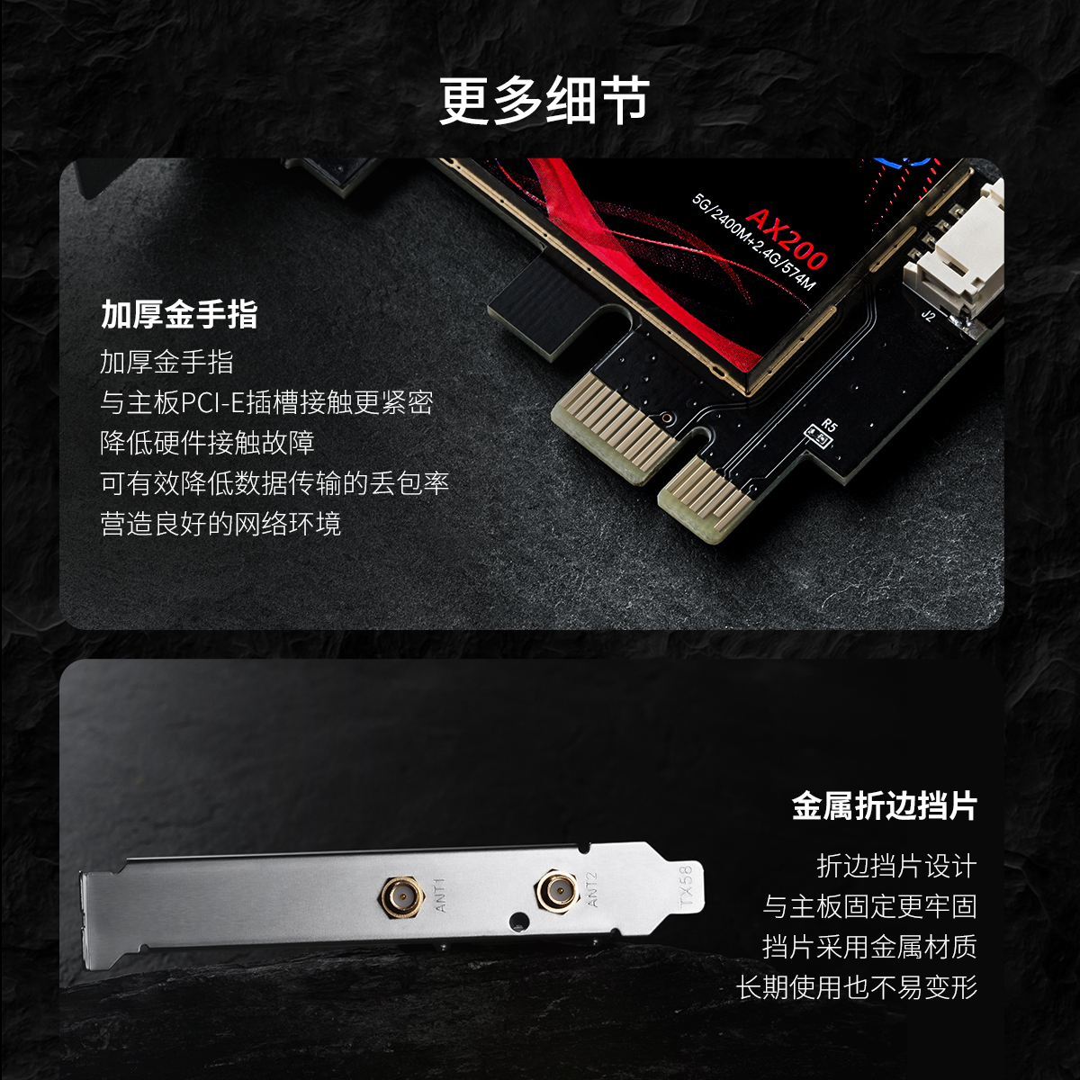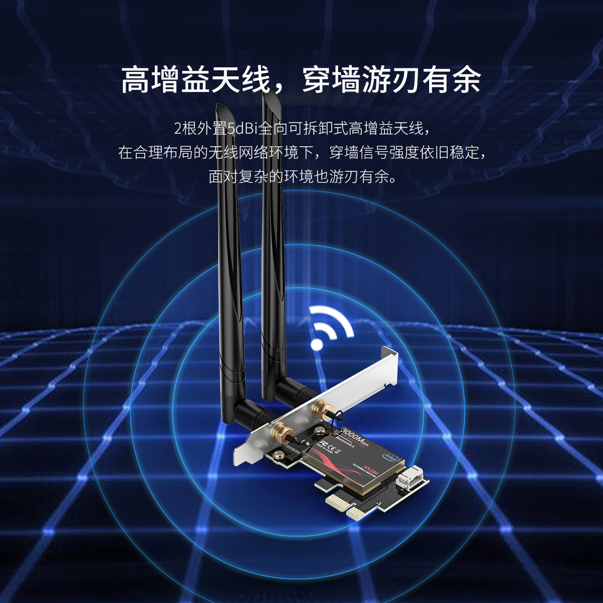 PCI-E无线蓝牙网卡,WiFi6网卡+路由器,lntel AX200芯片,2根外置5dBi全向可拆卸式高增益天线