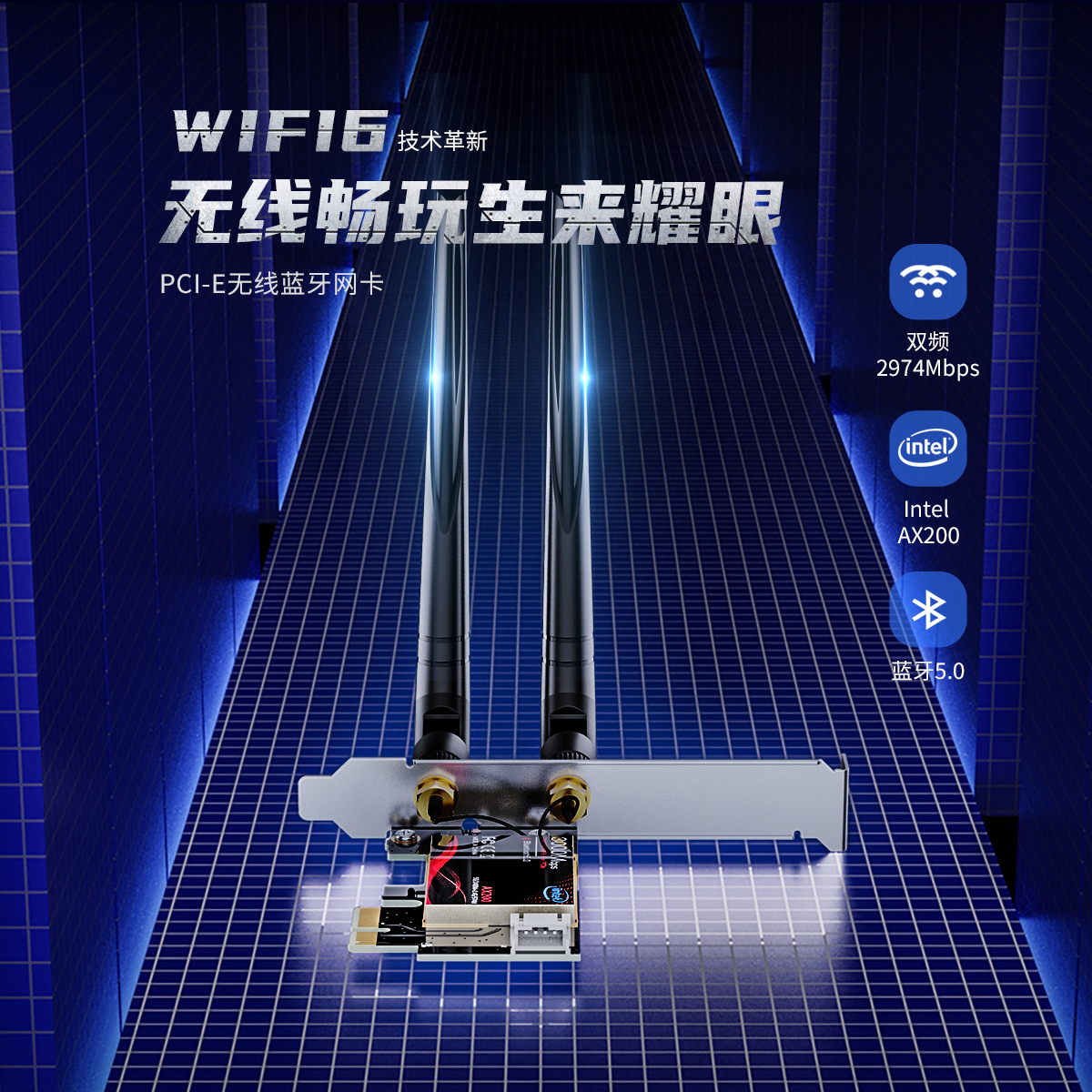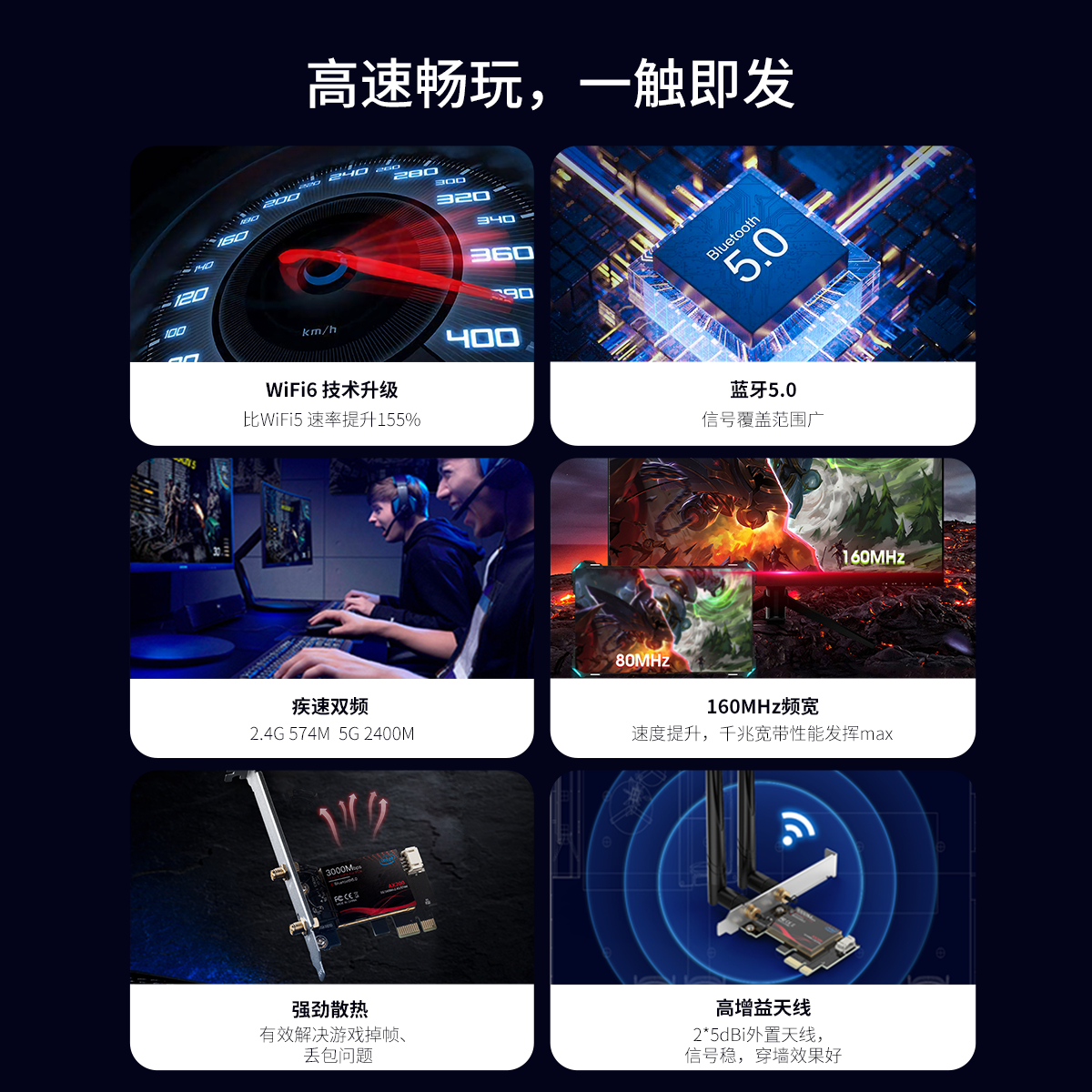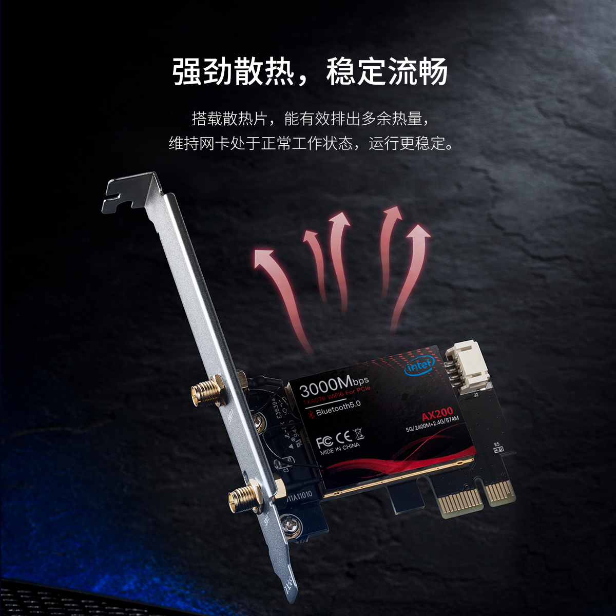 PCI-E无线蓝牙网卡,WiFi6网卡+路由器,lntel AX200芯片,2根外置5dBi全向可拆卸式高增益天线