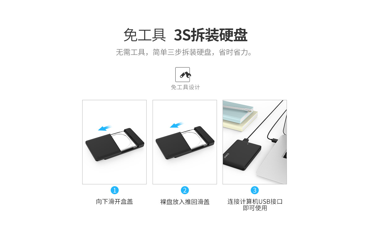无需工具,简单三步拆装硬盘,省时省力