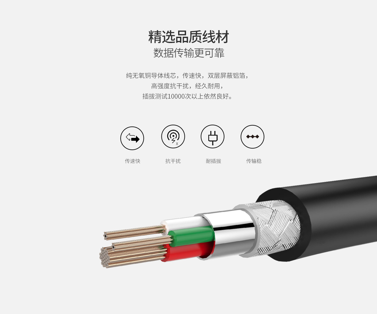 传速快,高强度抗干扰,经久耐用,传输稳定。